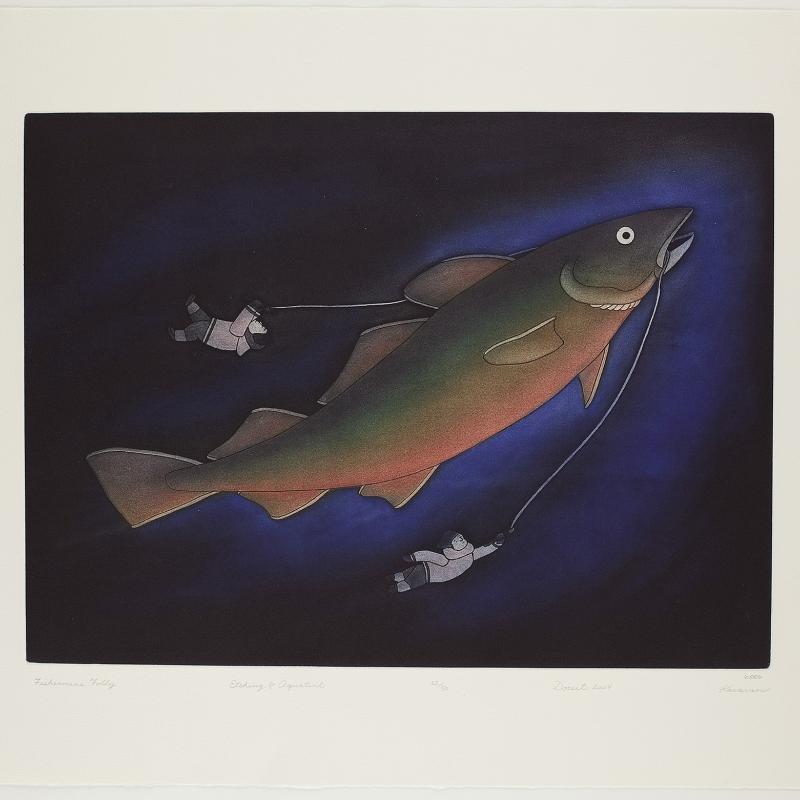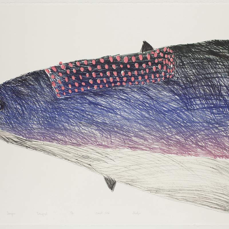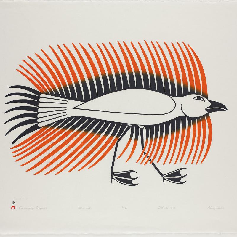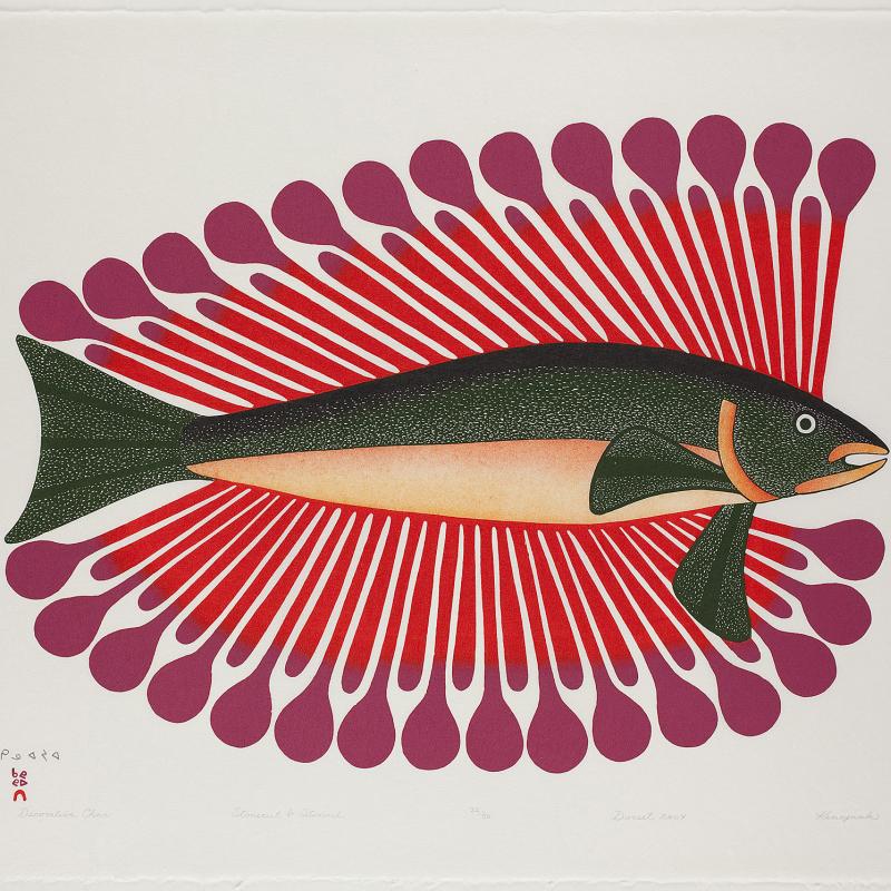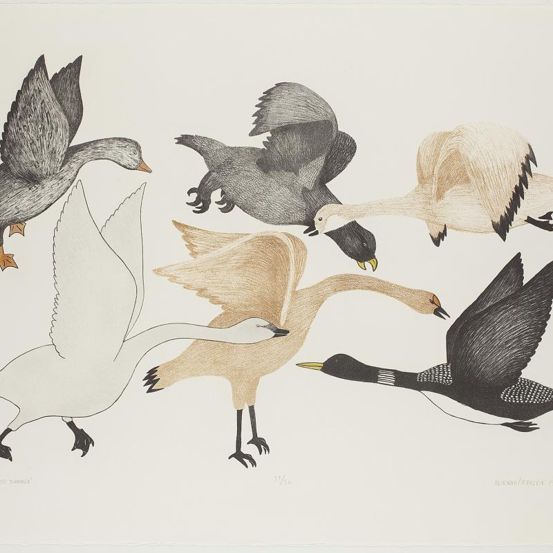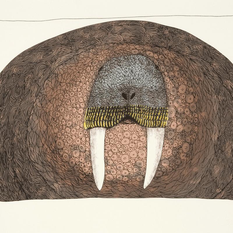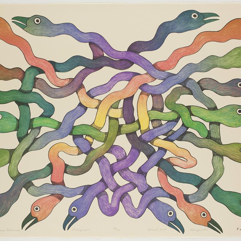 In 2005, an exhibition entitled Far North: Inuit Prints and Drawings from Cape Dorset focused on the work of artists from what is one of the most important and innovative centers of Inuit art. Recently, the gallery acquired the 2009 Cape Dorset print collection, which was released by Dorset Fine Arts to mark Kinngait Studio’s 50th anniversary. Nipirasait: Many Voices, an exhibition based on the 36 prints in the collection, premiered at the Canadian Embassy in Washington, D.C., in 2010, and was presented the following year at St. Lawrence University and the College of Wooster Art Museum in Wooster, Ohio. Another exhibition drawn from St. Lawrence University’s permanent collection, North of Sixty: Canadian Inuit Prints, was presented at the Huntington Museum of Art in West Virginia in 2014.