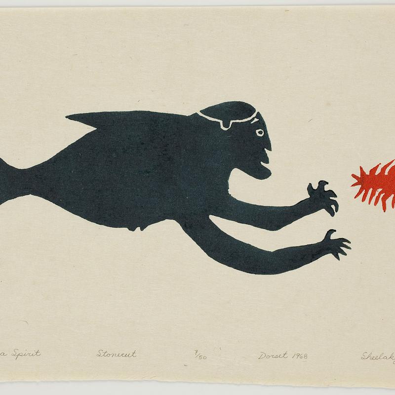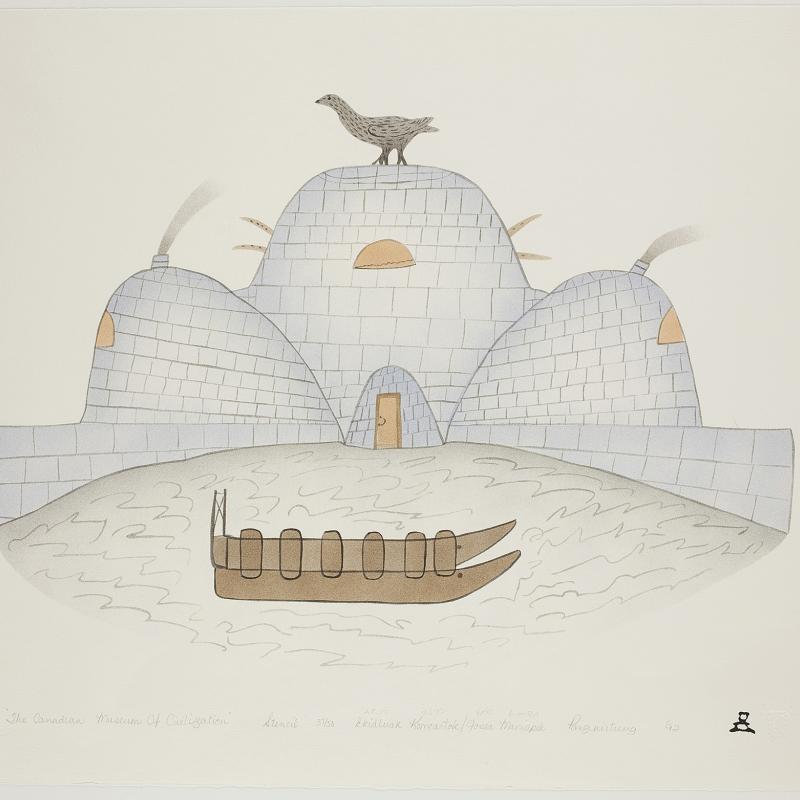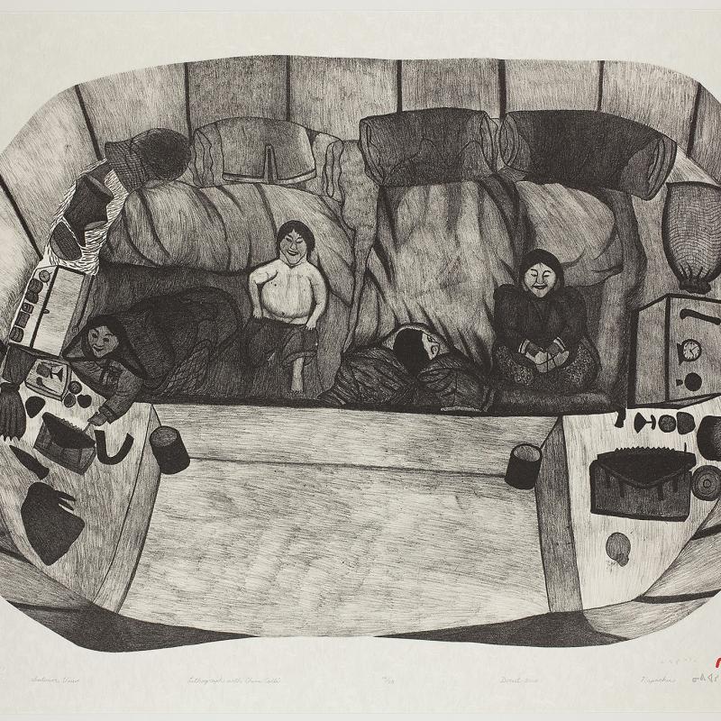 The Canadian Inuit art collection at St. Lawrence University includes more than 125 original prints, drawings, photographs, and carvings from Cape Dorset, Pangnirtung, and Baker Lake. Highly distinguished artists in the collection include Kenojuak Ashevak (1927-2013), Kananginak Pootoogook (1935-2010), Pudlo Pudlat (1916-1992), Kavavaow Mannomee (b.1958), and Ningeokuluk Teevee (b.1963). A series of editorial cartoons by the late Alootook Ipellie (1951-2007) is also featured.