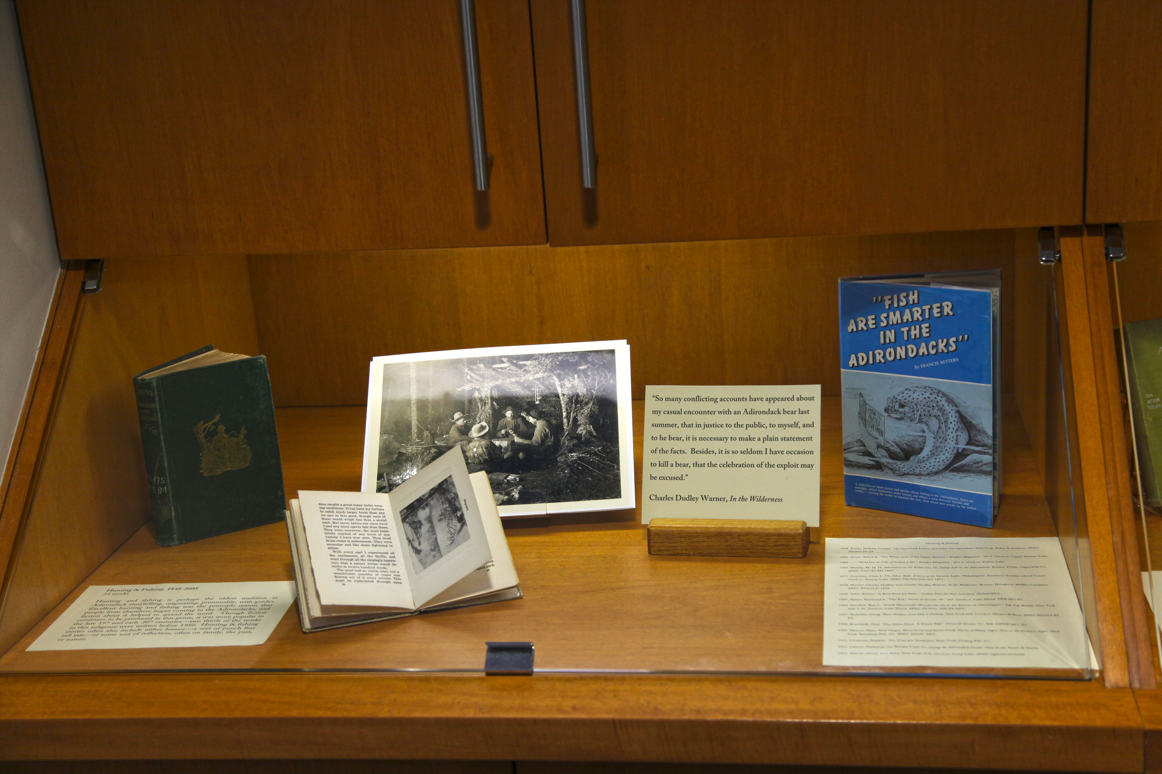 "Adirondack Perceptions: 200+ Years of Fiction Within the Blue Line" an exhibition and bibliography of Adirondack fiction from 1802 – 2014 by St Lawrence University student Fellow Jacqueline Colt ('15) is on display in the Special Collections Reading Room, Owen D. Young Library for the Fall 2014 semester.