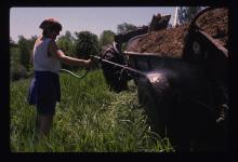 Washing Tires of Manure/Compost Spreader Before Going into Quarentine Field