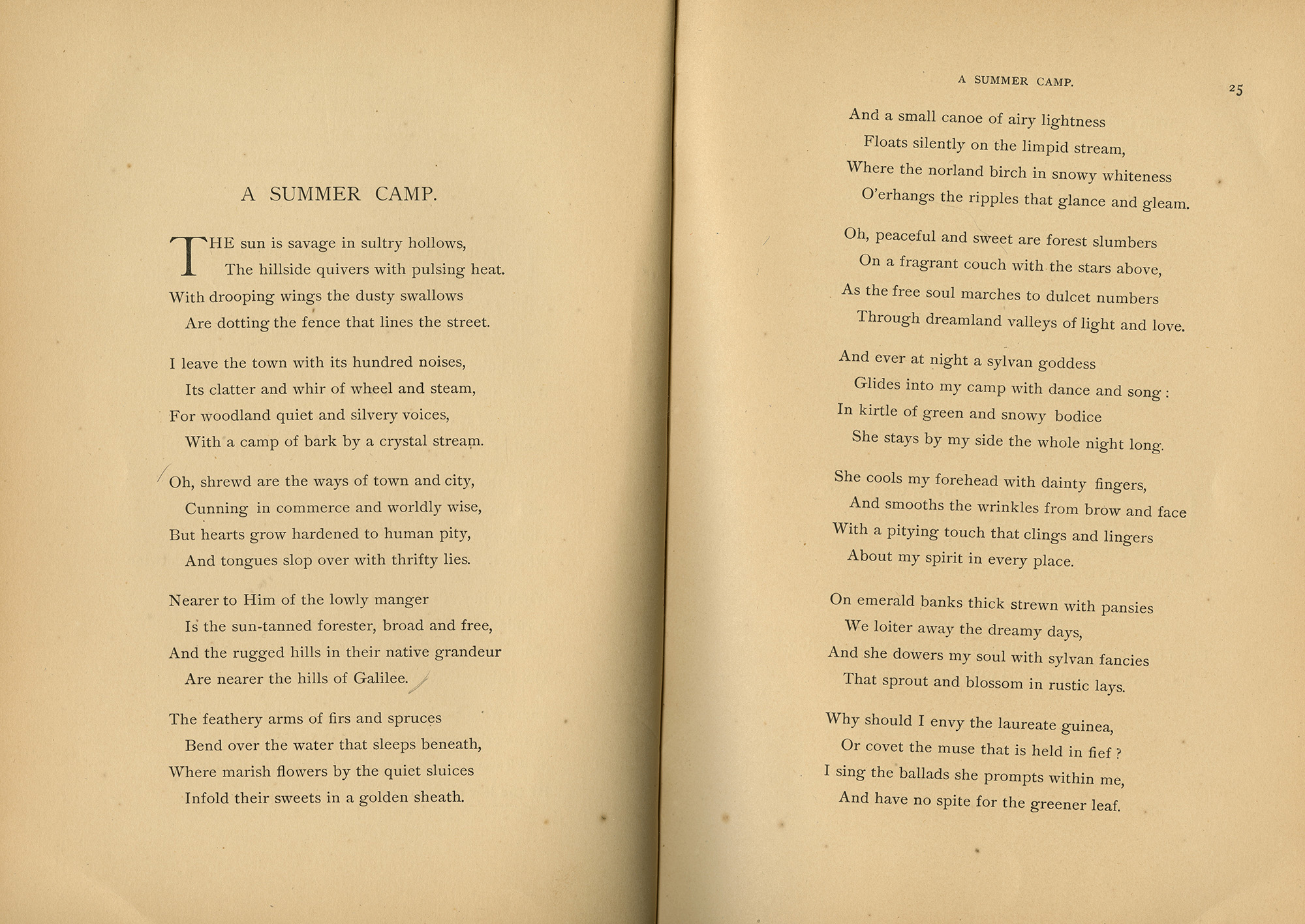Sears, George Washington. Forest Runes. New York: Forest & Stream Publishing Co., 1887. SPEC PS2797.S6 F67 1887.