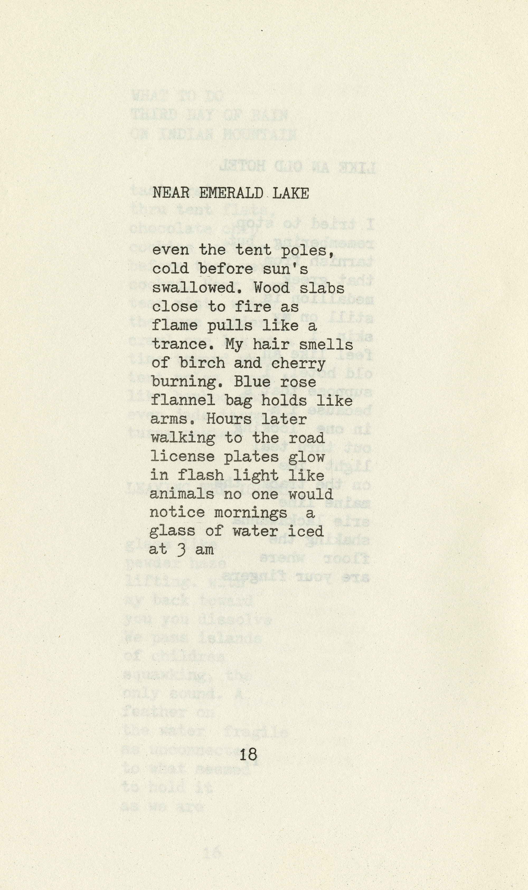 Lifshin, Lyn. The Camping Madonna at Indian Lake. 1st ed. M.A.F Press, 1986. SPEC PS3562 .I4537 C3 1986.