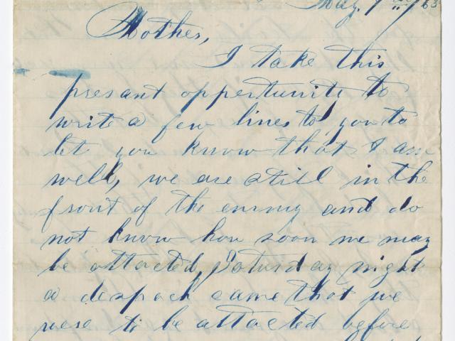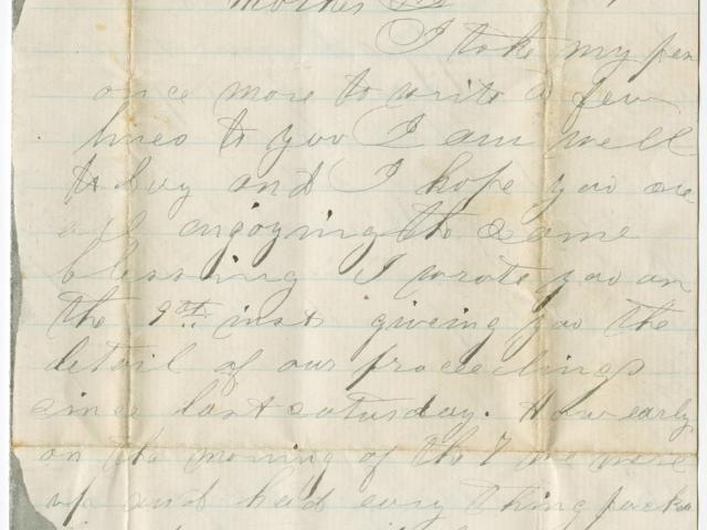 Mother I again seat myself to pen a few lines to apprise you of my welfair