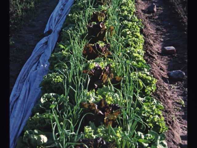 Beautiful Bed of Lettuce and Onions with Row Cover
