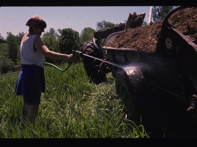 Washing Tires of Manure/Compost Spreader Before Going into Quarentine Field