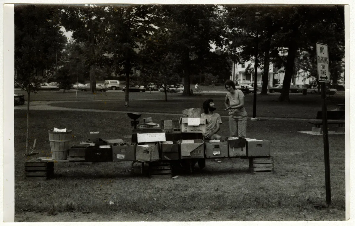 Explore this collection architecture biographical flowers spinach history gatherings building tomatoes mulch garlic harvest energy poetry farming activism fences porches folklife cover crops tractors green manure group photograph trees season extension organic farming sense of place buildings advertising lettuce Overview Creator: Jones, Doug Subject: Organic farmingSustainable agricultureBirdsfoot FarmFarmers' marketsOrganic gardeningVegetable gardening Description:Birdsfoot members at the Canton Farmer's Market. Source:Original version: photograph, b&w; 5 x 8 in. Rights Rights Management:Original materials may be protected by the Copyright Law of the United States (more information). Resource Identifier:Private Collection Contributor:Birdsfoot Farm Relation:Back to the Land Technical Digitization Specifications:Scanned at 600ppi on Epson 1000XL scanner as 48-bit RGB uncompressed TIFF images. Images resized to 960 pixels wide, 150 dpi, and saved as JPEG (level 7) in Photoshop CS4 with Unsharp Mask of 60:1. Date Digital:Mon, 01/25/2010 - 20:00 Format:image/jpeg Type:Image