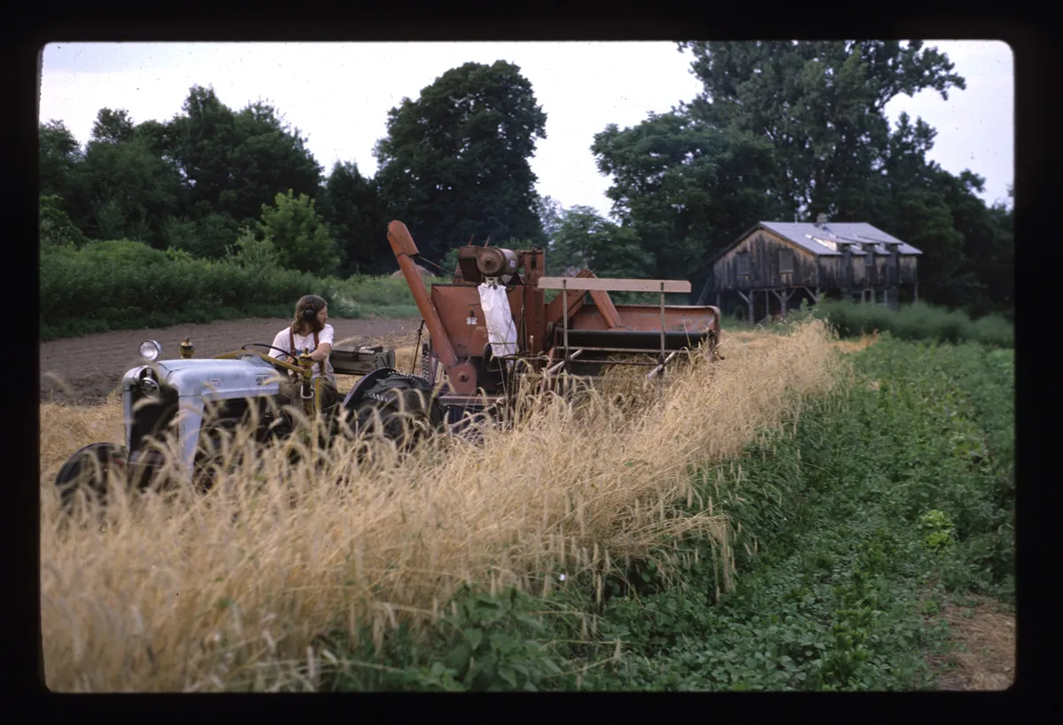 Explore this collection cover crops architecture fences mulch garlic group photograph farming season extension advertising biographical history folklife tractors tomatoes poetry activism organic farming flowers sense of place spinach energy lettuce building harvest buildings gatherings porches trees green manure Overview Creator: Jones, Doug Subject: Organic farmingSustainable agricultureBirdsfoot FarmCombinesFarm equipmentFarm tracrtorsField crops Source:Original version: 35 mm color slide. Date Original:1989 Rights Rights Management:Original materials may be protected by the Copyright Law of the United States (more information). Resource Identifier:Private Collection Contributor:Birdsfoot Farm Relation:Back to the Land Technical Digitization Specifications:Scanned with Nikon Super CoolScan 9000 ED scanner as uncompressed TIFF images. Images resized to 1200 pixels wide, 150 dpi, and saved as JPEG (level 7) in Photoshop CS4 with Unsharp Mask of 60:1. Date Digital:Tue, 01/12/2010 - 20:00 Format:image/jpeg Type:Image