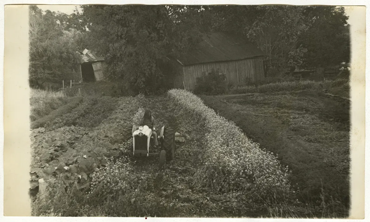 Explore this collection buildings folklife history porches biographical gatherings garlic sense of place fences green manure organic farming advertising mulch group photograph architecture poetry activism season extension harvest tomatoes lettuce energy building farming cover crops spinach flowers trees tractors Overview Creator: Jones, Doug Subject: Organic farmingSustainable agricultureBirdsfoot FarmHarrowingCroplandsFarm EquipmentSowingGreen manure cropsFarm tractorsOutbuildingsOrganic gardeningVegetable gardening Source:Original version: photograph, b&w; 4 1/2 x 8 in. Date Original:1975? Rights Rights Management:Original materials may be protected by the Copyright Law of the United States (more information). Resource Identifier:Private Collection Contributor:Birdsfoot Farm Relation:Back to the Land Technical Digitization Specifications:Scanned at 600ppi on Epson 1000XL scanner as 48-bit RGB uncompressed TIFF images. Images resized to 960 pixels wide, 150 dpi, and saved as JPEG (level 7) in Photoshop CS4 with Unsharp Mask of 60:1. Date Digital:Mon, 01/25/2010 - 20:00 Format:image/jpeg Type:Image