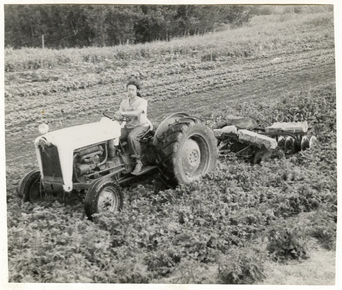 Explore this collection buildings harvest poetry farming lettuce architecture history sense of place tractors porches fences green manure trees spinach organic farming group photograph advertising season extension mulch activism gatherings garlic biographical folklife building tomatoes energy cover crops flowers Overview Creator: Jones, Doug Subject: Sustainable agricultureOrganic farmingGreen manure cropsFarm tractorsHarrowingSowingSoil management Description:David Katz discing the fields at Birdsfoot Farm. Coverage:Saint Lawrence River ValleyNorth CountrySaint Lawrence County Source:Original version: photograph, b&w; 5x5 3/4 in. Rights Rights Management:Original materials may be protected by the Copyright Law of the United States (more information). Resource Identifier:Private Collection Contributor:Katz, David Relation:Back to the Land Technical Digitization Specifications:Scanned at 600ppi on Epson 1000XL scanner as 48-bit RGB uncompressed TIFF images. Images resized to 960 pixels wide, 150 dpi, and saved as JPEG (level 7) in Photoshop CS4 with Unsharp Mask of 60:1. Date Digital:Thu, 11/19/2009 - 20:00 Format:image/jpeg Type:Image