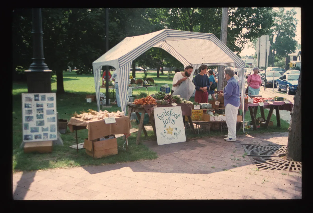 Explore this collection mulch flowers garlic fences season extension green manure farming advertising folklife gatherings organic farming activism buildings architecture sense of place energy poetry history harvest biographical cover crops group photograph spinach tomatoes trees tractors porches building lettuce Overview Creator: Jones, Doug Subject: Organic farmingSustainable agricultureBirdsfoot FarmFarmers' marketOrganic gardeningVegetable gardeningMarketing Description:Birdsfoot Farm sold vegetables at Canton Farmers' Market. Source:Original version: 35 mm color slide. Date Original:1994 Rights Rights Management:Original materials may be protected by the Copyright Law of the United States (more information). Resource Identifier:Private Collection Contributor:Birdsfoot Farm Relation:Back to the Land Technical Digitization Specifications:Scanned with Nikon Super CoolScan 9000 ED scanner as uncompressed TIFF images. Images resized to 1200 pixels wide, 150 dpi, and saved as JPEG (level 7) in Photoshop CS4 with Unsharp Mask of 60:1. Date Digital:Wed, 01/20/2010 - 20:00 Format:image/jpeg Type:Image