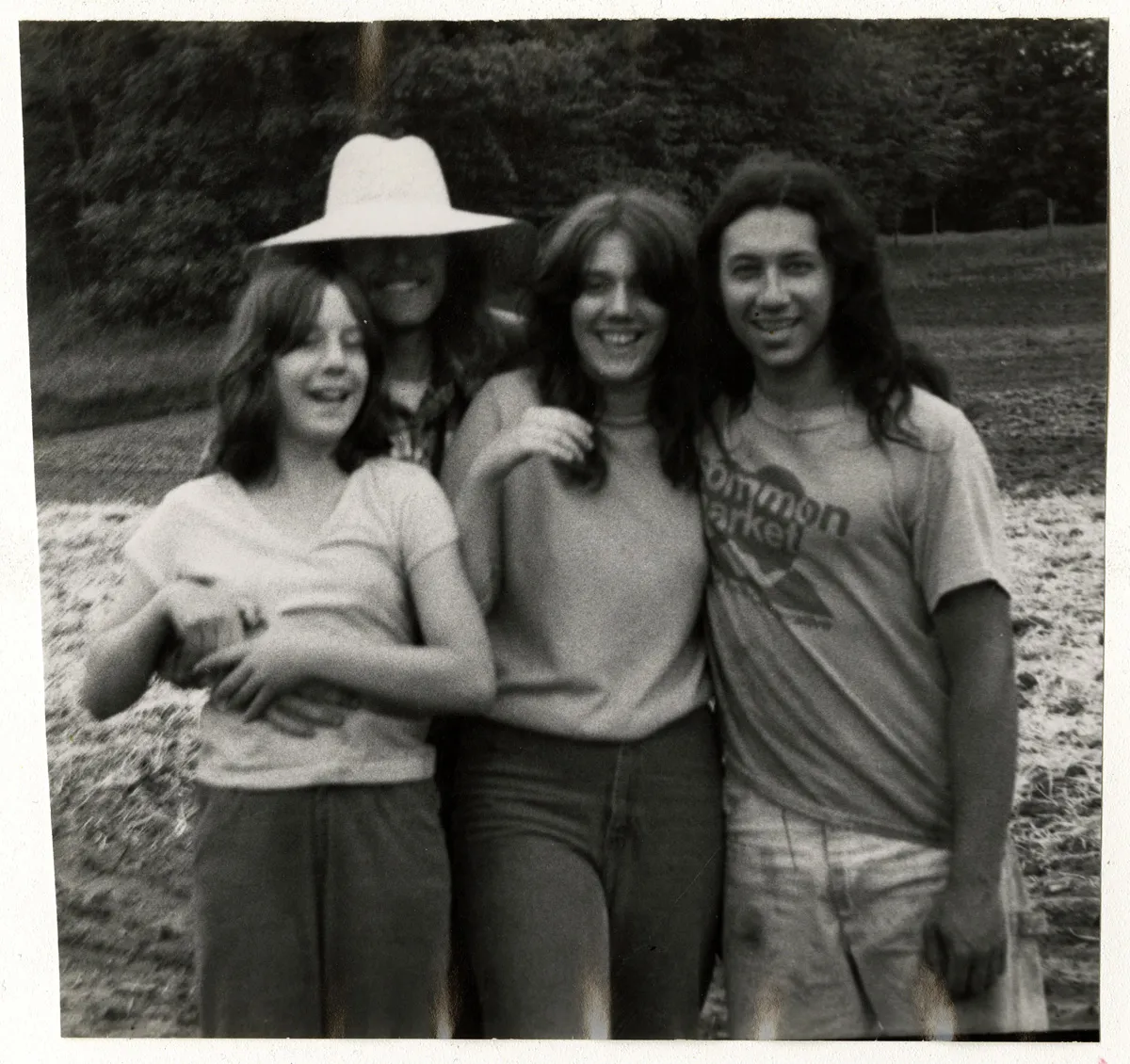 Explore this collection fences cover crops season extension lettuce green manure history sense of place organic farming flowers advertising architecture energy group photograph spinach gatherings farming poetry garlic trees biographical buildings harvest mulch building folklife porches tractors tomatoes activism Overview Creator: Jones, Doug Subject: Organic farmingSustainable agricultureBirdsfoot FarmOrganic gardeningGardensVegetable gardeningFarm lifePortraits, Group Description:Group shot at Birdsfoot; Kathy Allen, Doug Jones, unknown woman, David Katz. Source:Original version: photograph, b&w; 5x5 1/8 in. Rights Rights Management:Original materials may be protected by the Copyright Law of the United States (more information). Resource Identifier:Private Collection Contributor:Katz, David Relation:Back to the Land Technical Digitization Specifications:Scanned at 600ppi on Epson 1000XL scanner as 48-bit RGB uncompressed TIFF images. Images resized to 960 pixels wide, 150 dpi, and saved as JPEG (level 7) in Photoshop CS4 with Unsharp Mask of 60:1. Date Digital:Thu, 11/19/2009 - 20:00 Format:image/jpeg Type:Image