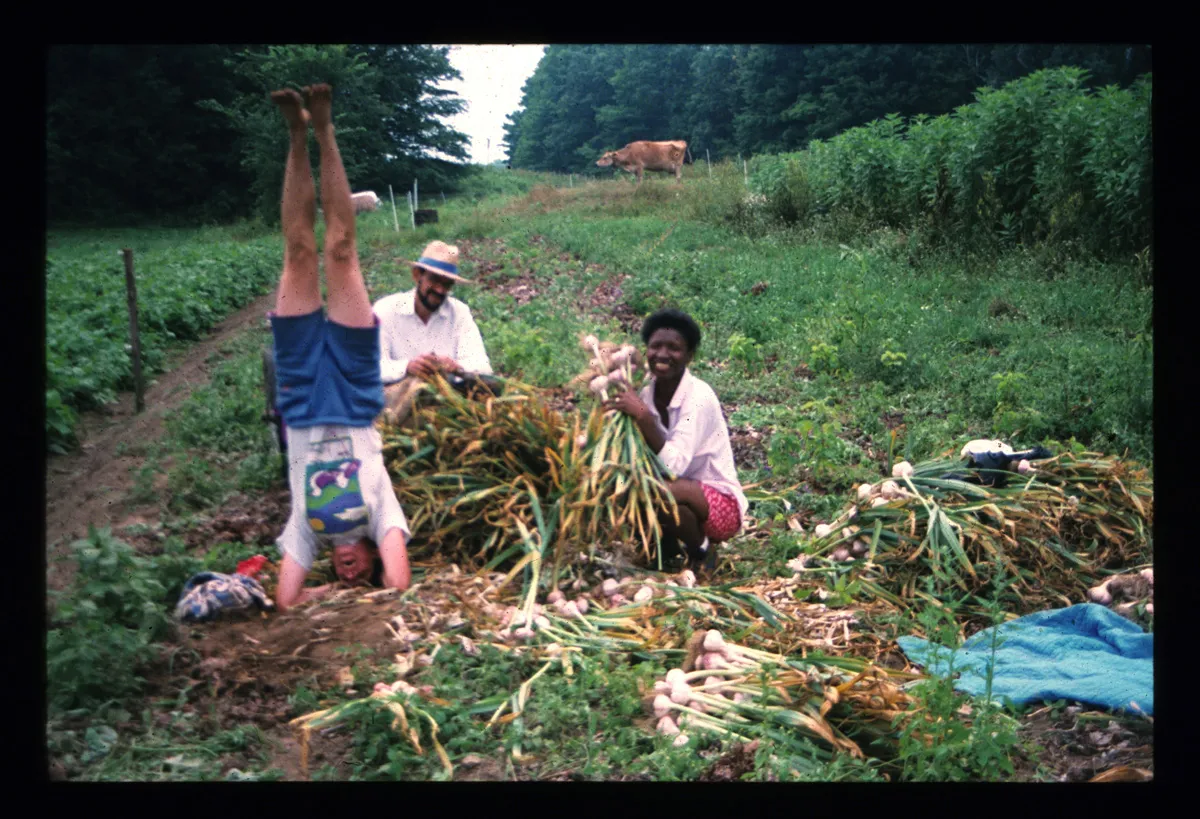 Explore this collection buildings sense of place advertising biographical architecture season extension lettuce green manure activism flowers spinach group photograph history energy garlic fences cover crops trees gatherings mulch building organic farming farming folklife poetry tractors harvest tomatoes porches Overview Creator: Jones, Doug Subject: Organic farmingSustainable agricultureBirdsfoot FarmHarvestingGarlicVegetable gardeningOrganic gardening Source:Original version: 35 mm color slide. Rights Rights Management:Original materials may be protected by the Copyright Law of the United States (more information). Resource Identifier:Private Collection Contributor:Birdsfoot Farm Relation:Back to the Land Technical Digitization Specifications:Scanned with Nikon Super CoolScan 9000 ED scanner as uncompressed TIFF images. Images resized to 1200 pixels wide, 150 dpi, and saved as JPEG (level 7) in Photoshop CS4 with Unsharp Mask of 60:1. Date Digital:Mon, 01/11/2010 - 20:00 Format:image/jpeg Type:Image