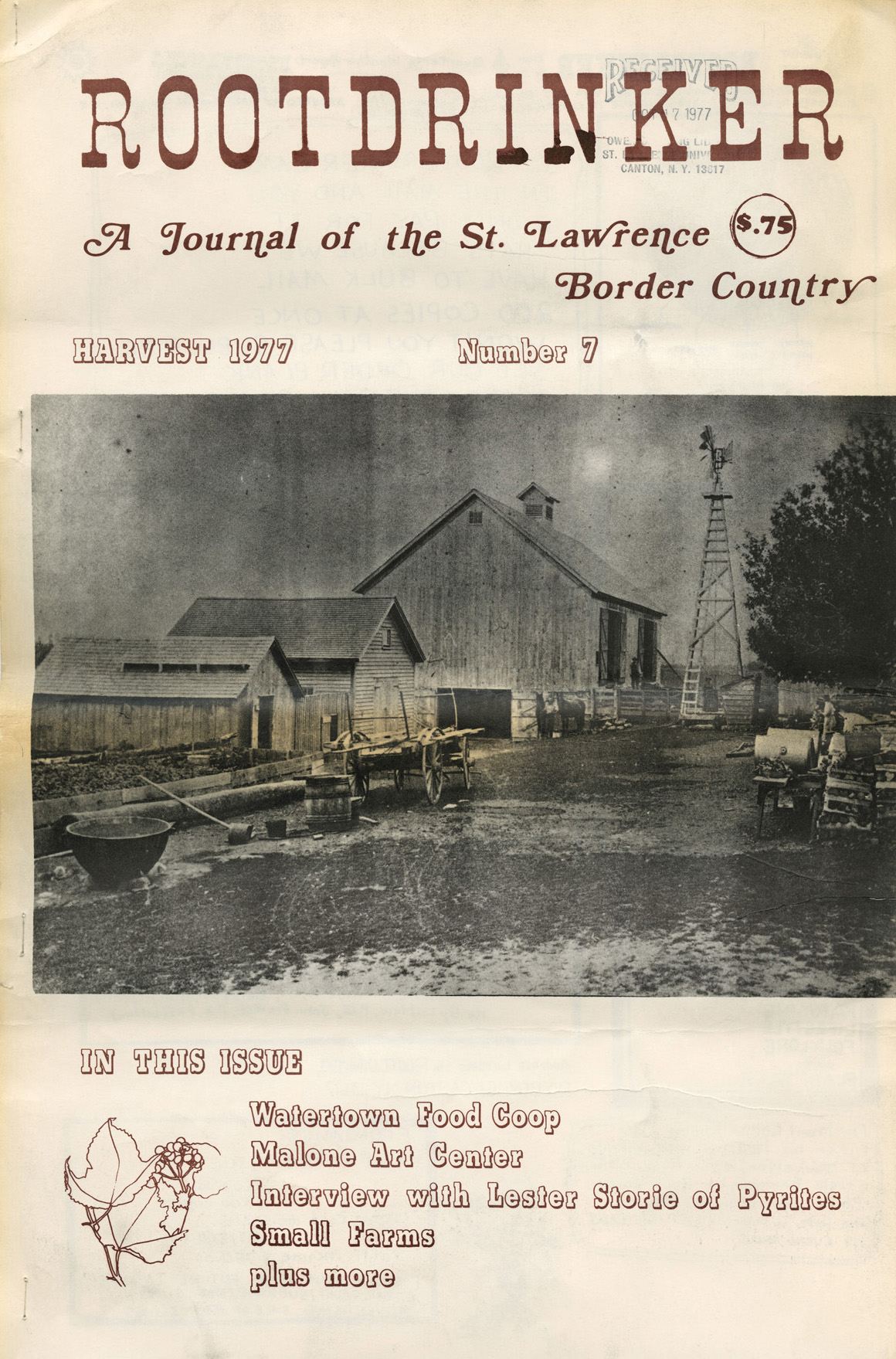 Journal:Rootdrinker Issue Number:7 Content Inside Front Cover and Table of Contents Conversation with Lester Storie Jones, Doug, Casline, Alan Safety First in Woodstoves Latella, Bo, Latella, Dee Photographs of Old Dekalb N.Y. Knapp, Jennifer Growing Pains at the Watertown Food Co-op Loper, Mariam Massaro Malone's Ballard Mill Lamite, Michael L. Advertisements Advertisements Alice Norman's Journal: Walking the Line Norman, Alice Natural Organic Farmers Annual Meeting Life is Short But Our Desires Are Many Ch'ien, Tao History of the Adirondack Guides Rhodes, Stephen G. Advertising Farm as Ecology Casline, Alan When I was Ten Years Old Gibeau, Elizabeth Missing Arrangement Allen, Jani Back Cover