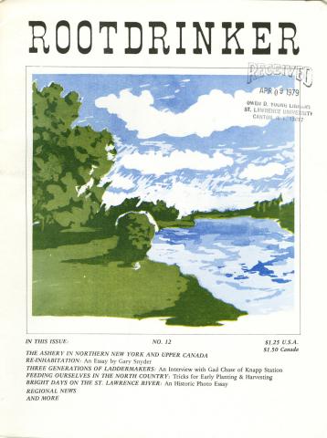 Journal:Rootdrinker Issue Number:12 Content Inside Front Cover Table of Contents Letters to the Editor Feeding Ourselves in the North Country Jones, Doug Gad Chase, Laddermaker Hartigan, Richard From Desperation to Deliverance, From Ashes to Cash Chittenden, Varick Advertising The Beanery DiNardi Danis, Anne, de la Vega, Terry Bright Days on the St. Lawrence River Regional News Re-Inhabitation Snyder, Gary Land Use in a Rural County Rocco, Ellen At Windfall Lewandowski, S. D Parker, Linda The Hudson River at Corinth Bruchac, Joseph Advertising Back Issues and Subscription Form Back Cover