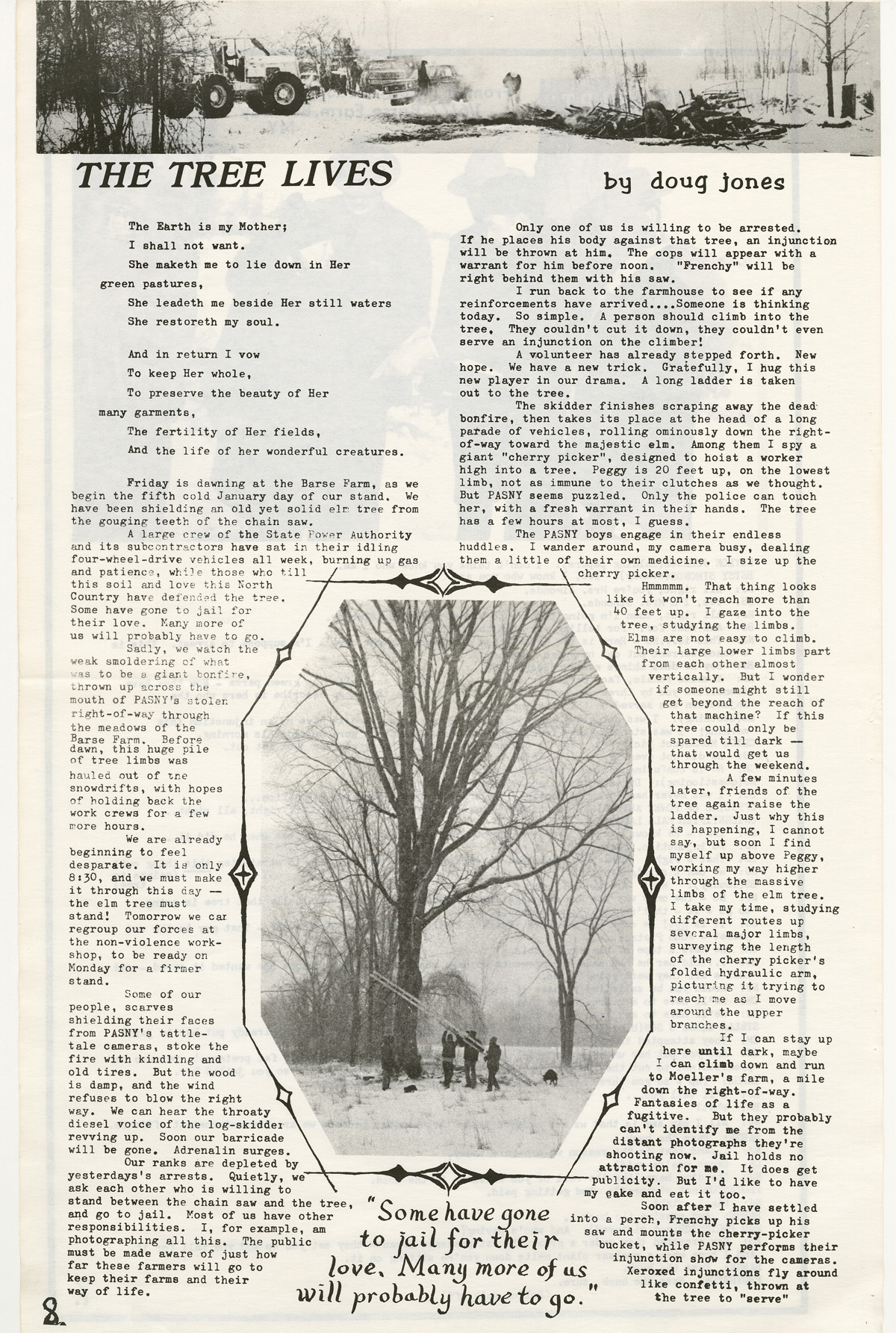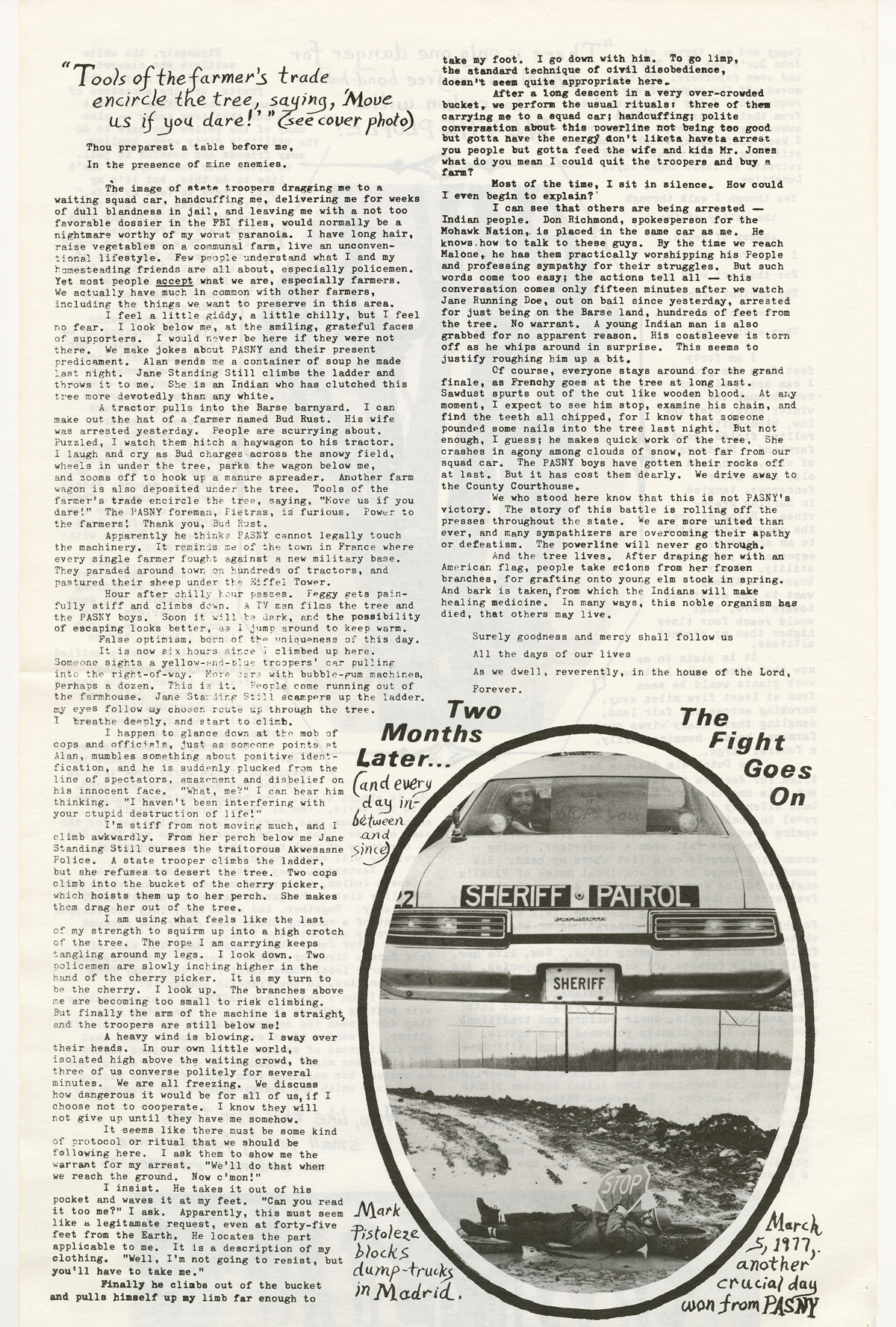 PDF:rootdrinker_n5_1977-8-10.pdf(3.75 MB) Overview Issue:Rootdrinker: A Journal of the St. Lawrence Border Country; Volume 2, Number 5, Spring Equinox 1977 Bibliographic Citation:Jones, Doug. "The Tree Lives." Rootdrinker 2.5 (1977): 8-10. Journal Title:Rootdrinker Creator: Jones, Doug Subject: Source:Original format: Published in Rootdrinker, volume 2, number 5, 1977. ODY Special Collections F127.S23 R66 Language:eng Start Page 8 Relation:Back to the Land Rights Rights Management:Original materials may be protected by the Copyright Law of the United States (more information). Resource Identifier:ODY Special Collections F127.S23 R66 Technical Digitization Specifications:Scanned at 600ppi on Epson 1000XL scanner as 48-bit RGB uncompressed TIFF images. Images resized to 960 pixels wide, 150 dpi, and saved as JPEG (level 7) in Photoshop CS4 with Unsharp Mask of 60:1. Date Digital:January 7, 2010 - 20:00 Format:text/html Type:Text