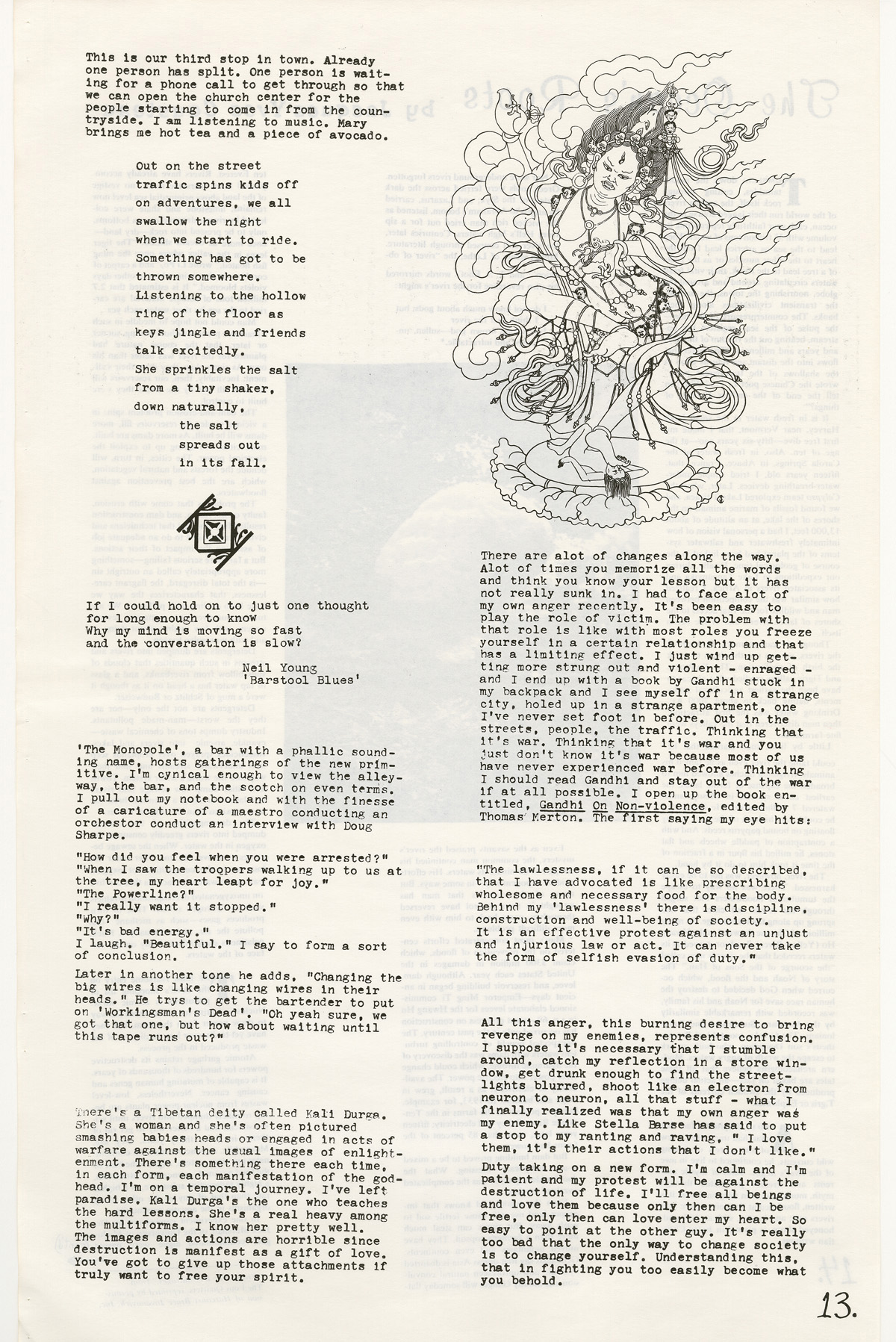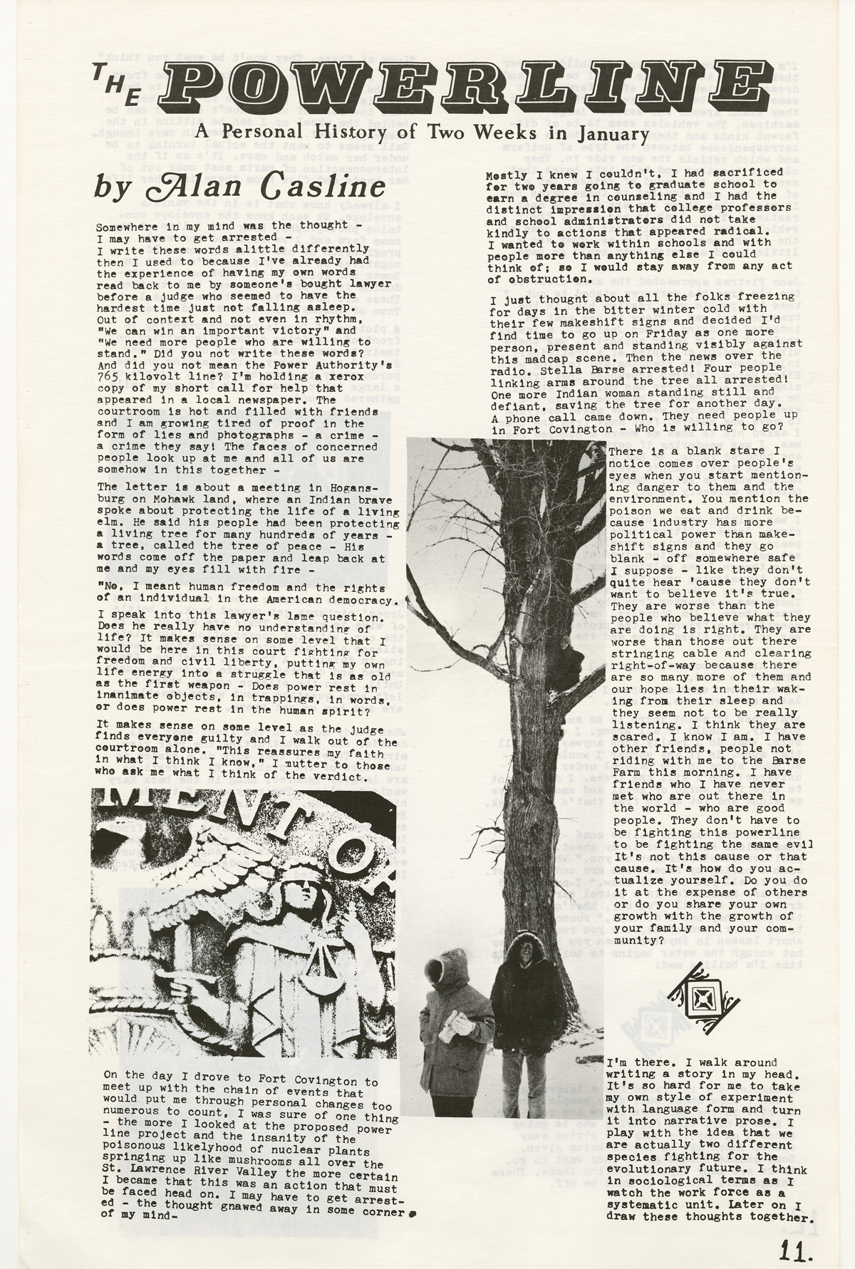 PDF:rootdrinker_n5_1977-11-13.pdf(3.3 MB) Overview Issue:Rootdrinker: A Journal of the St. Lawrence Border Country; Volume 2, Number 5, Spring Equinox 1977 Bibliographic Citation:Casline, Alan. "The Powerline: A Personal History of Two Weeks in January." Rootdrinker 2.5 (1977): 11-13. Journal Title:Rootdrinker Creator: Casline, Alan Subject: Source:Original format: Published in Rootdrinker, volume 2, number 5, 1977. ODY Special Collections F127.S23 R66 Language:eng Start Page 11 Relation:Back to the Land Rights Rights Management:Original materials may be protected by the Copyright Law of the United States (more information). Resource Identifier:ODY Special Collections F127.S23 R66 Technical Digitization Specifications:Scanned at 600ppi on Epson 1000XL scanner as 48-bit RGB uncompressed TIFF images. Images resized to 960 pixels wide, 150 dpi, and saved as JPEG (level 7) in Photoshop CS4 with Unsharp Mask of 60:1. Date Digital:January 9, 2010 - 20:00 Format:text/html Type:Text