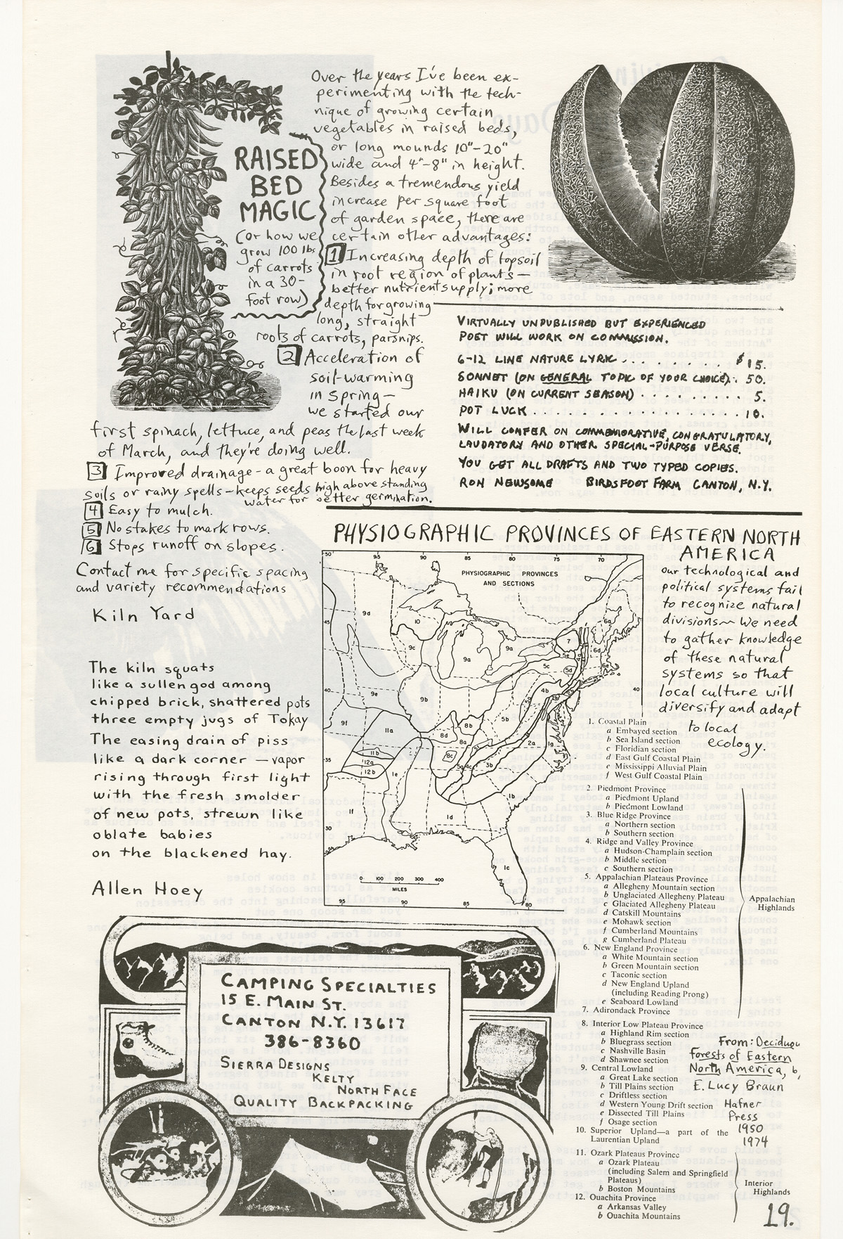 PDF:rootdrinker_n5_1977-19.pdf(1.08 MB) Overview Issue:Rootdrinker: A Journal of the St. Lawrence Border Country; Volume 2, Number 5, Spring Equinox 1977 Bibliographic Citation:Hoey, Allen. "Kiln Yard." Rootdrinker 2.5 (1977): 19. Journal Title:Rootdrinker Creator: Hoey, Allen Subject: Source:Original format: Published in Rootdrinker, volume 2, number 5, 1977. ODY Special Collections F127.S23 R66 Language:eng Start Page 19 Relation:Back to the Land Rights Rights Management:Original materials may be protected by the Copyright Law of the United States (more information). Resource Identifier:ODY Special Collections F127.S23 R66 Technical Digitization Specifications:Scanned at 600ppi on Epson 1000XL scanner as 48-bit RGB uncompressed TIFF images. Images resized to 960 pixels wide, 150 dpi, and saved as JPEG (level 7) in Photoshop CS4 with Unsharp Mask of 60:1. Date Digital:January 9, 2010 - 20:00 Format:text/html Type:Text