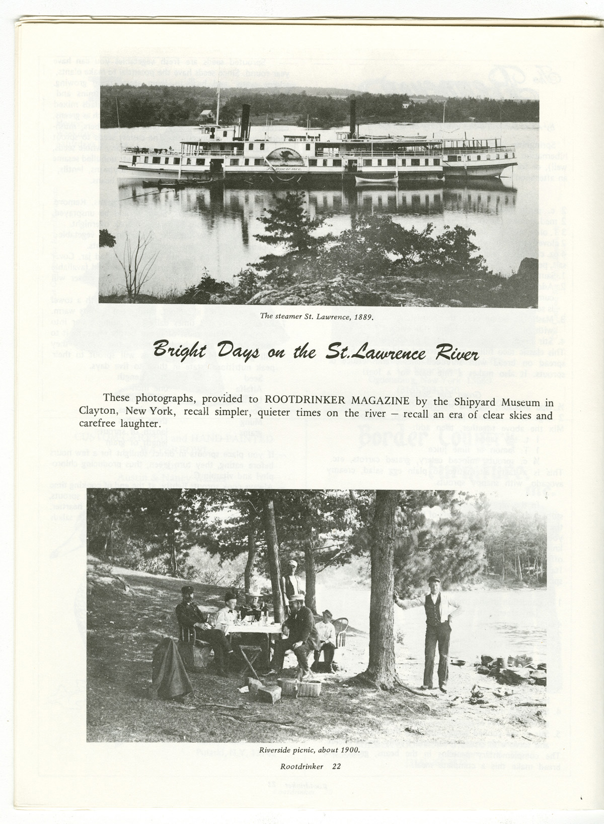 PDF:rootdrinker_v3_n12_1979_22-23.pdf(1.8 MB) Overview Issue:Rootdrinker; Volume 3, Number 12, Spring 1979 Bibliographic Citation:"Bright Days on the St. Lawrence River." Rootdrinker 3.12 (1979): 22-23. Journal Title:Rootdrinker Creator: Subject: Source:Original format: Published in Rootdrinker, volume 3, number 12, 1979. ODY Special Collections F127.S23 R66 Language:eng Start Page 22 Relation:Back to the Land Rights Rights Management:Original materials may be protected by the Copyright Law of the United States (more information). Resource Identifier:ODY Special Collections F127.S23 R66 Technical Digitization Specifications:Scanned at 600ppi on Epson 1000XL scanner as 48-bit RGB uncompressed TIFF images. Images resized to 1200 pixels wide, 150 dpi, and saved as JPEG (level 7) in Photoshop CS4 with Unsharp Mask of 60:1. Date Digital:January 26, 2010 - 20:00 Format:text/html Type:Text
