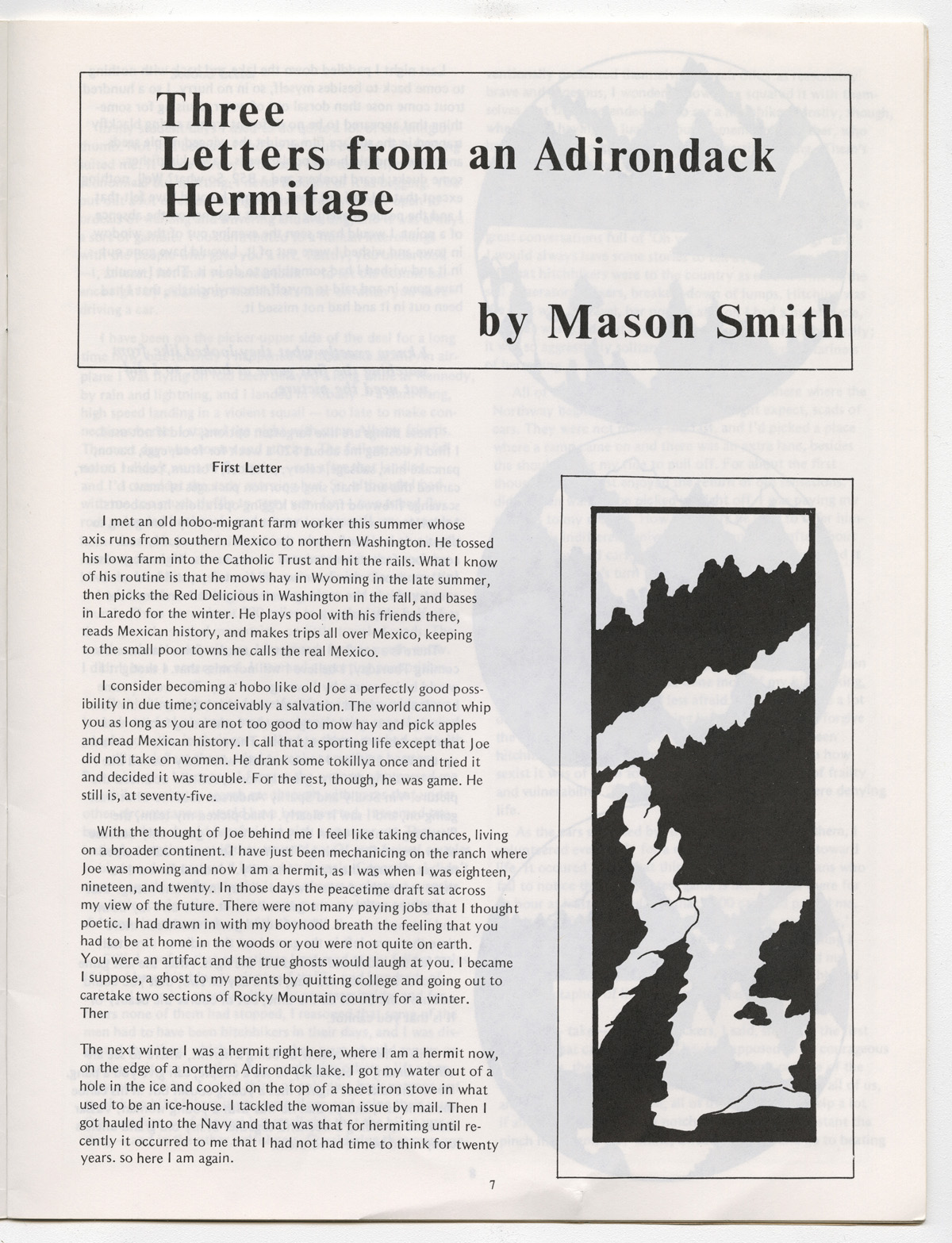 Smith, Mason. "Three Letters from an Adirondack Hermitage." Rootdrinker 3.14 (1980): 7-11.