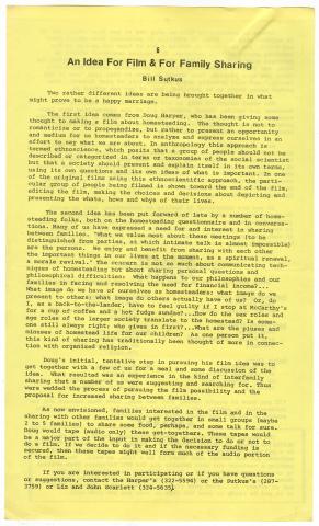 Sutkus, Bill. "An Idea for Film and for Family Sharing." Newsletter of the Natural Farmers' Co-operative of the St. Lawrence Valley, Inc. (Winter 1982): 6.