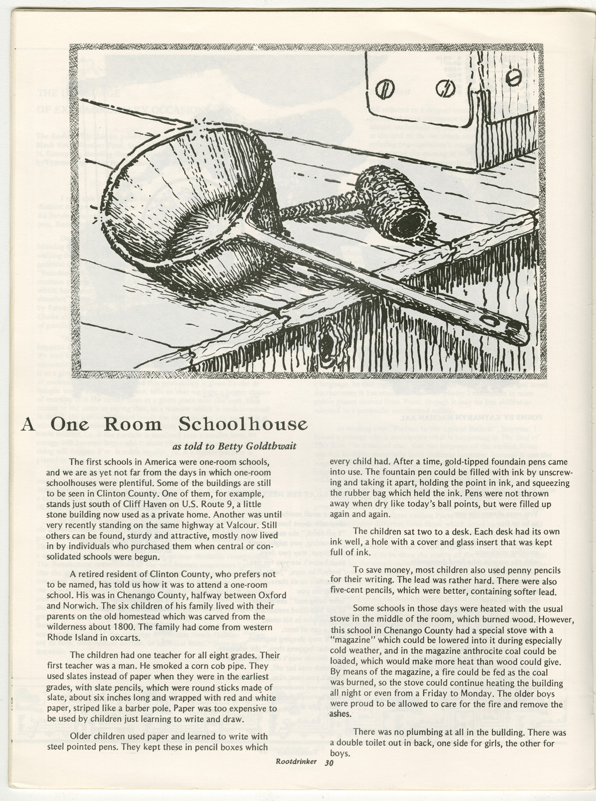 Godthwait, Betty. "A One Room Schoolhouse." Rootdrinker 3.13 (1979): 30-31.