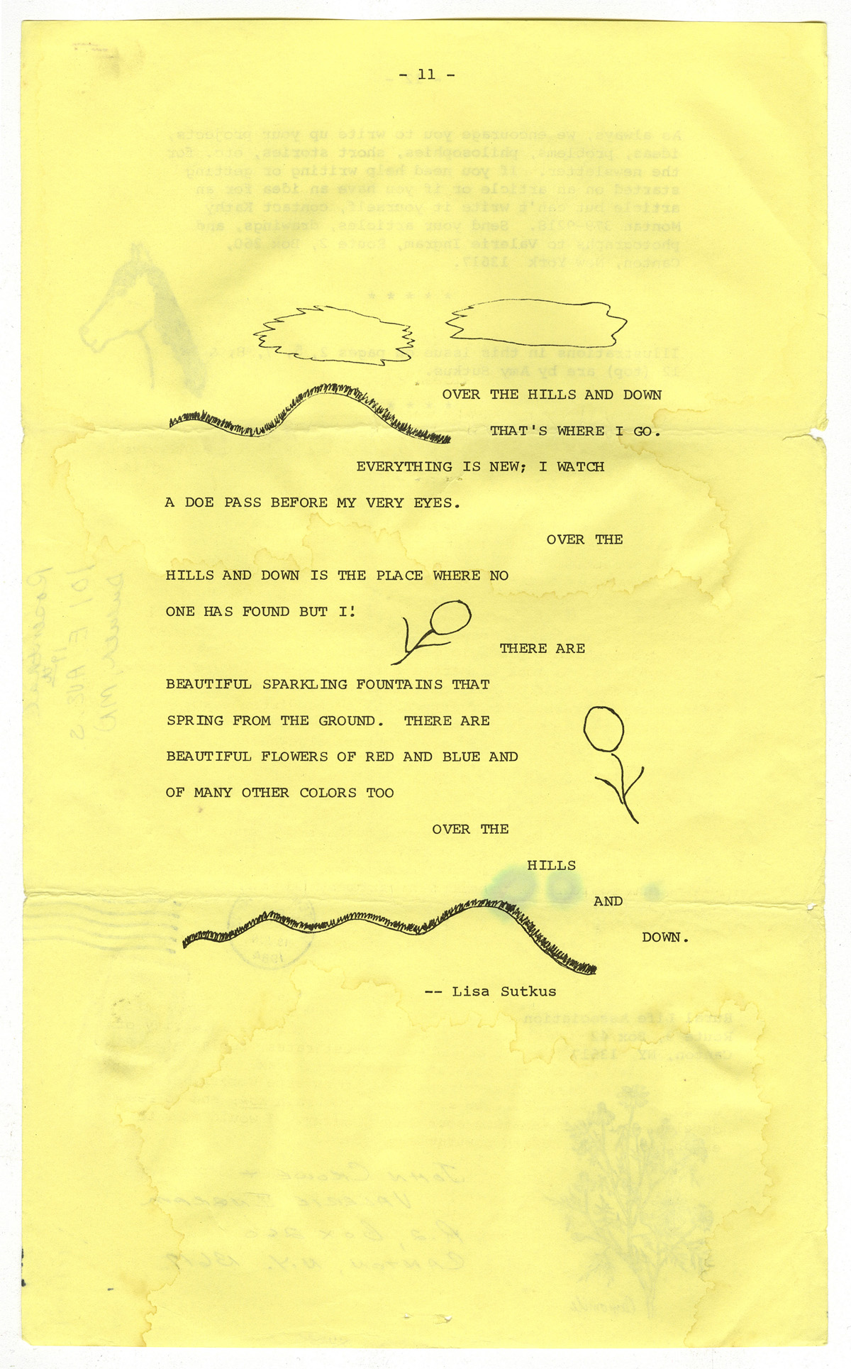 PDF:rla-newsletter-june-1984-11.pdf(220.07 KB) Overview Issue:Newsletter of the Rural Life Association; June 1984 Bibliographic Citation:Sutkus, Lisa. "Poem". Newsletter of the Rural Life Association. June (1984): 11. Journal Title:Newsletter of the Rural Life Association Creator: Sutkus, Lisa Subject: Source:Original format: Published in the Newsletter of the Rural Life Association, June 1984. Language:eng Start Page 11 Relation:Back to the Land Rights Rights Management:Original materials may be protected by the Copyright Law of the United States (more information). Technical Digitization Specifications:Scanned at 600ppi on Epson 1000XL scanner as 48-bit RGB uncompressed TIFF images. Images resized to 1200 pixels wide, 150 dpi, and saved as JPEG (level 7) in Photoshop CS4 with Unsharp Mask of 60:1. Date Digital:April 4, 2010 - 21:00 Format:text/html Type:Text