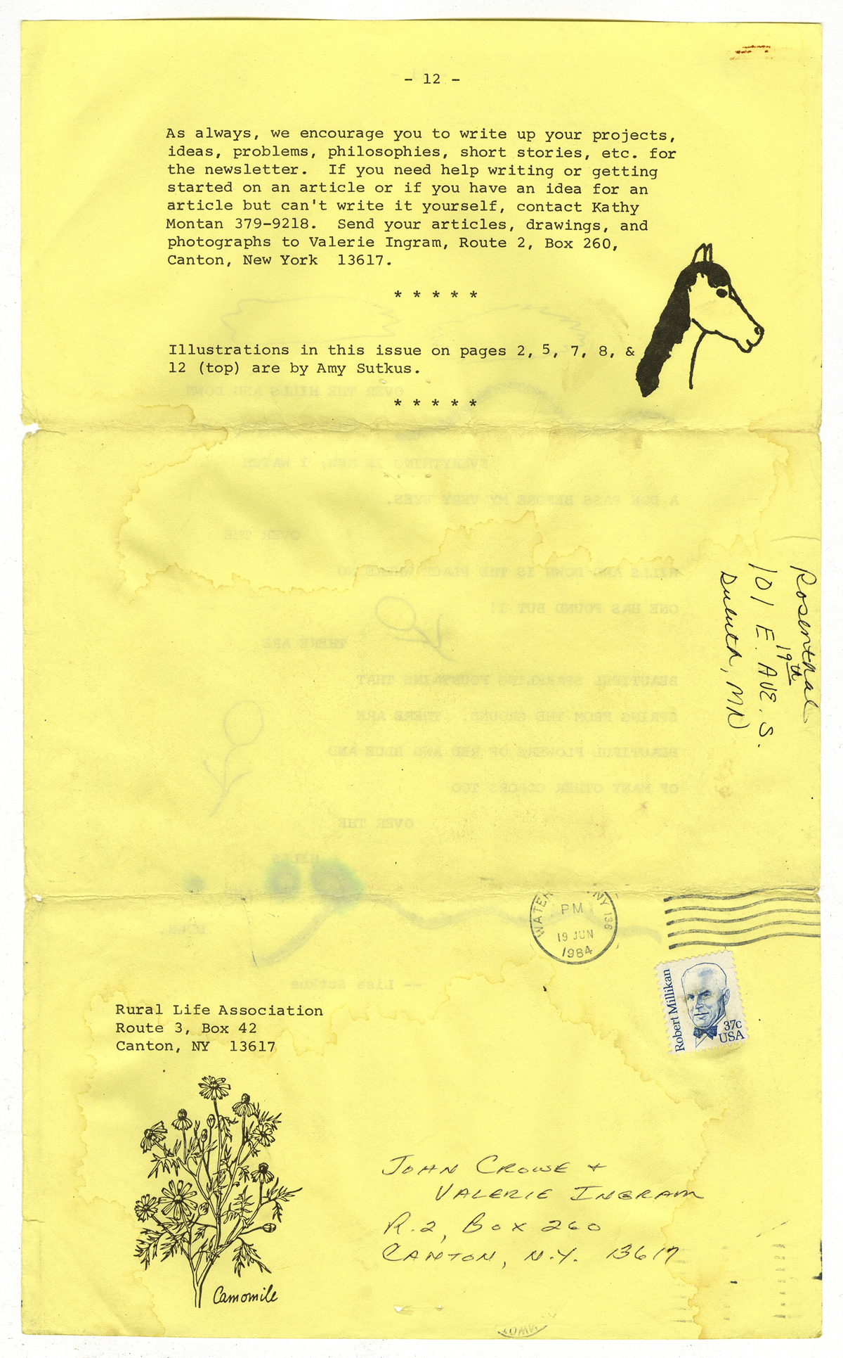 "Back Cover". Newsletter of the Rural Life Association. June (1984): 12.