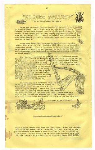 PDF:rla_newsletter_february_1984_17.pdf(455.49 KB) Overview Issue:Newsletter of the Rural Life Association; February 1984 Bibliographic Citation:Jones, Doug. ""Rogues Gallery" To Be Established In Canton". Newsletter of the Rural Life Association. February (1984): 17. Journal Title:Newsletter of the Rural Life Association Creator: Jones, Doug Subject: Source:Original format: Published in the Newsletter of the Rural Life Association, February 1984. Language:eng Start Page 17 Relation:Back to the Land Rights Rights Management:Original materials may be protected by the Copyright Law of the United States (more information). Technical Digitization Specifications:Scanned at 600ppi on Epson 1000XL scanner as 48-bit RGB uncompressed TIFF images. Images resized to 1200 pixels wide, 150 dpi, and saved as JPEG (level 7) in Photoshop CS4 with Unsharp Mask of 60:1. Date Digital:April 4, 2010 - 21:00 Format:text/html Type:Text