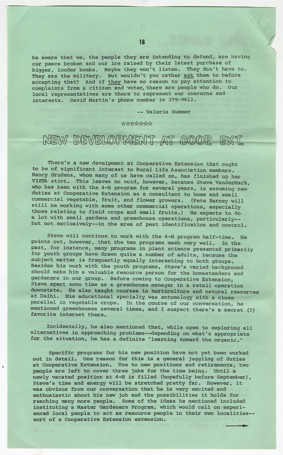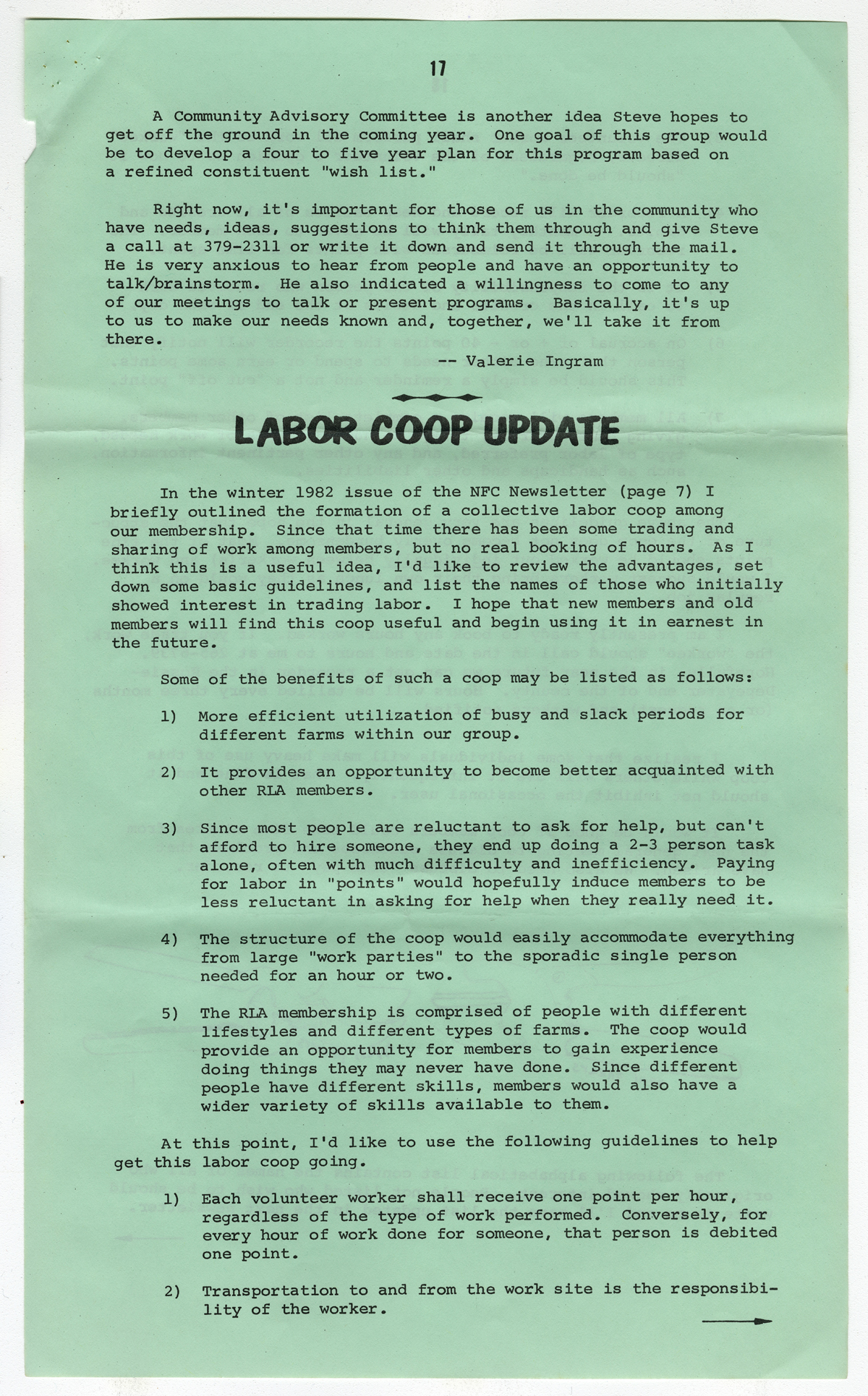 Ingram, Valerie. "New Development at Coop. Ext.". Newsletter of the Rural Life Association. June (1983): 16-17.