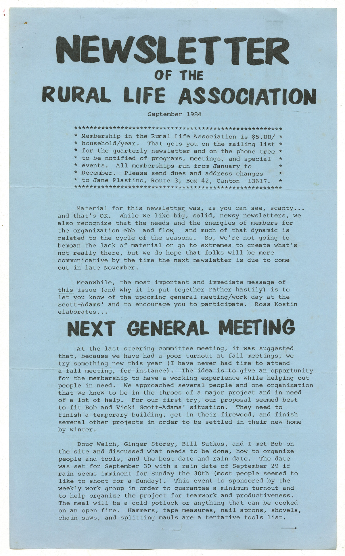 "Next General Meeting". Newsletter of the Rural Life Association. September (1984): 1-2.