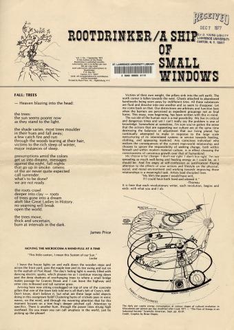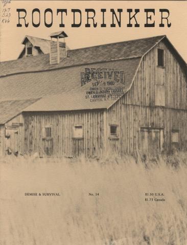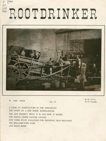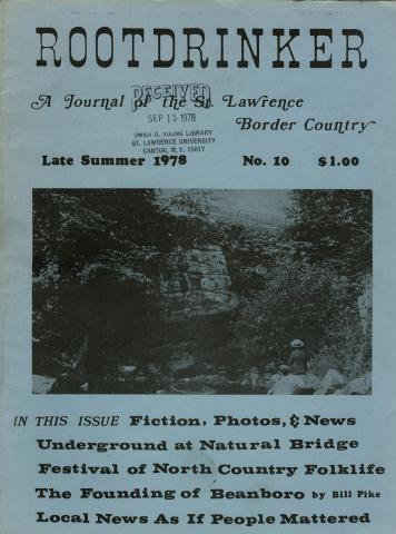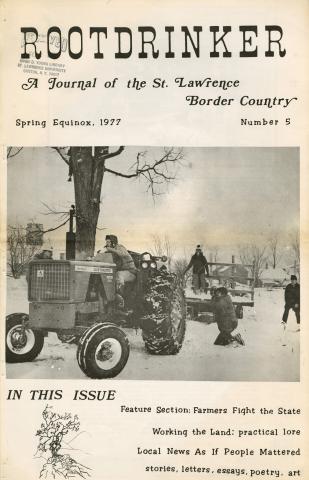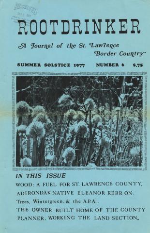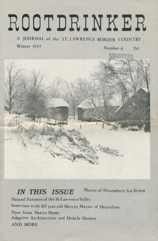 The Rootdrinker is a journal with a bio-regional and environmental outlook with a focus on the St. Lawrence Border Country. "Local News as if People Mattered" was one tag line. It covered the great protests against 765KV powerlines and nuclear power plants on the St. Lawrence River, a battle that involved many of the region's homesteaders. Rootdrinker was way ahead of the curve on food and farm policy and included a number of visionary articles on the future of food.
