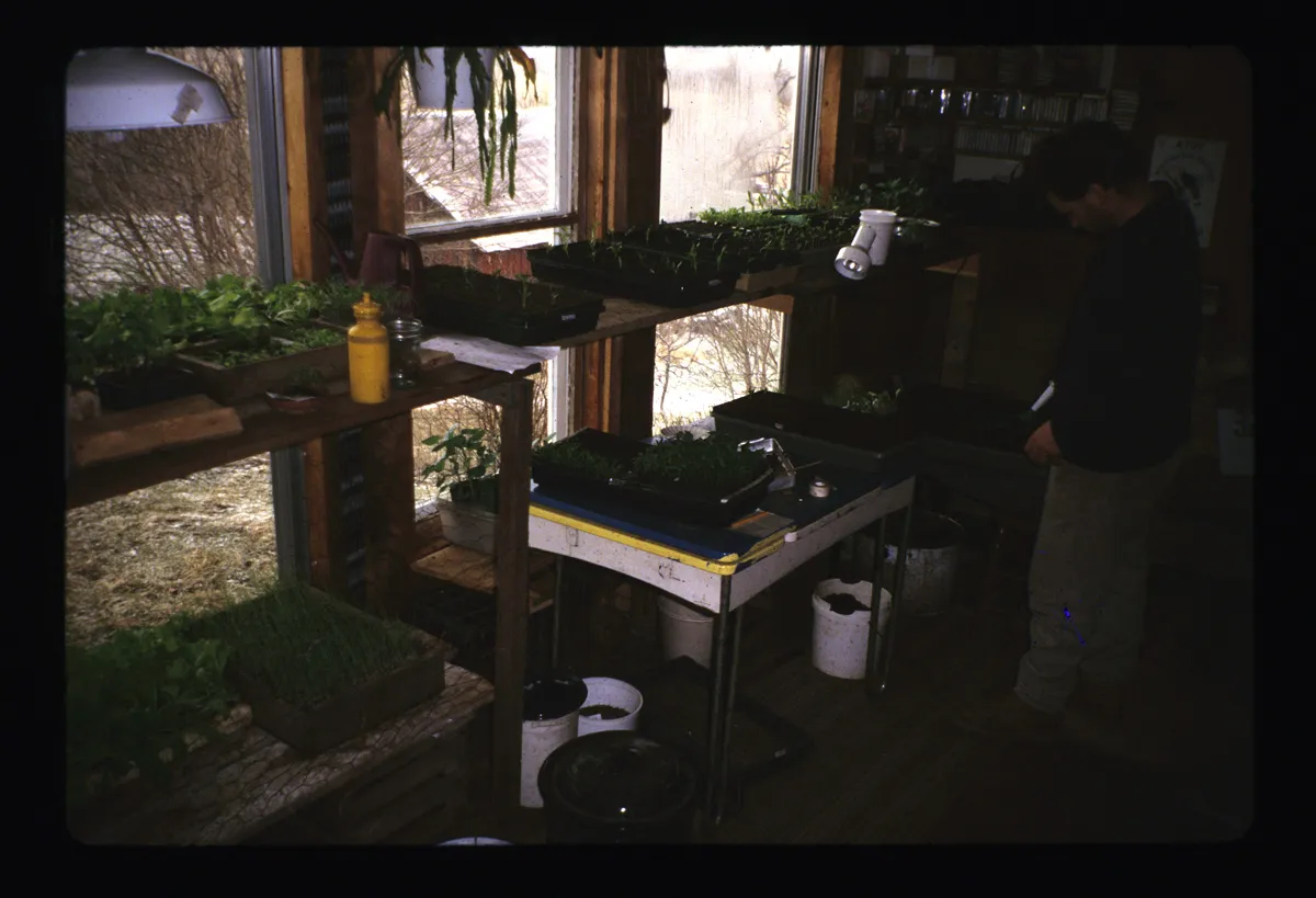 Explore this collection tomatoes organic farming poetry spinach flowers activism energy season extension building architecture biographical green manure cover crops farming sense of place mulch advertising garlic trees porches harvest gatherings fences buildings tractors lettuce history group photograph folklife Overview Creator: Jones, Doug Subject: Organic farmingSustainable agricultureBirdsfoot FarmBuildingsOrganic gardeningLog buildingsDwellingsGreenhouses Source:Original version: 35 mm color slide. Date Original:1995 Rights Rights Management:Original materials may be protected by the Copyright Law of the United States (more information). Resource Identifier:Private Collection Contributor:Birdsfoot Farm Relation:Back to the Land Technical Digitization Specifications:Scanned with Nikon Super CoolScan 9000 ED scanner as uncompressed TIFF images. Images resized to 1200 pixels wide, 150 dpi, and saved as JPEG (level 7) in Photoshop CS4 with Unsharp Mask of 60:1. Date Digital:Tue, 01/12/2010 - 20:00 Format:image/jpeg Type:Image
