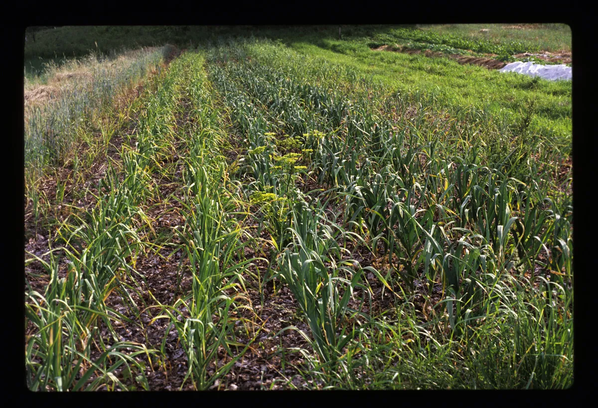 Explore this collection architecture harvest poetry farming folklife energy buildings building cover crops tractors green manure history season extension spinach group photograph advertising sense of place porches trees lettuce activism mulch flowers organic farming gatherings fences tomatoes garlic biographical Overview Creator: Jones, Doug Subject: Organic farmingSustainable agricultureBirdsfoot FarmGarlicOrganic gardeningVegetable gardeningGardensMulchingFarm produce Source:Original version: 35 mm color slide. Rights Rights Management:Original materials may be protected by the Copyright Law of the United States (more information). Resource Identifier:Private Collection Contributor:Birdsfoot Farm Relation:Back to the Land Technical Digitization Specifications:Scanned with Nikon Super CoolScan 9000 ED scanner as uncompressed TIFF images. Images resized to 1200 pixels wide, 150 dpi, and saved as JPEG (level 7) in Photoshop CS4 with Unsharp Mask of 60:1. Date Digital:Wed, 01/13/2010 - 20:00 Format:image/jpeg Type:Image