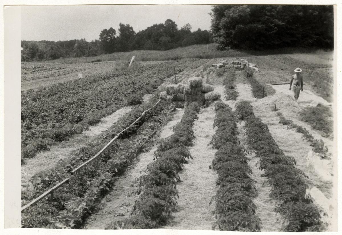 Explore this collection flowers sense of place tractors buildings group photograph green manure architecture farming activism building poetry season extension gatherings organic farming spinach garlic lettuce trees advertising tomatoes history folklife fences harvest mulch porches energy biographical cover crops Overview Creator: Jones, Doug Subject: Organic farmingSustainable agricultureTomatoesOrganic gardeningVegetable gardeningFarm produceGardensMulching Source:Original version: photograph, b&w; 5 1/2x8 in. Rights Rights Management:Original materials may be protected by the Copyright Law of the United States (more information). Resource Identifier:Private Collection Contributor:Katz, David Relation:Back to the Land Technical Digitization Specifications:Scanned at 600ppi on Epson 1000XL scanner as 48-bit RGB uncompressed TIFF images. Images resized to 960 pixels wide, 150 dpi, and saved as JPEG (level 7) in Photoshop CS4 with Unsharp Mask of 60:1. Date Digital:Thu, 11/19/2009 - 20:00 Format:image/jpeg Type:Image