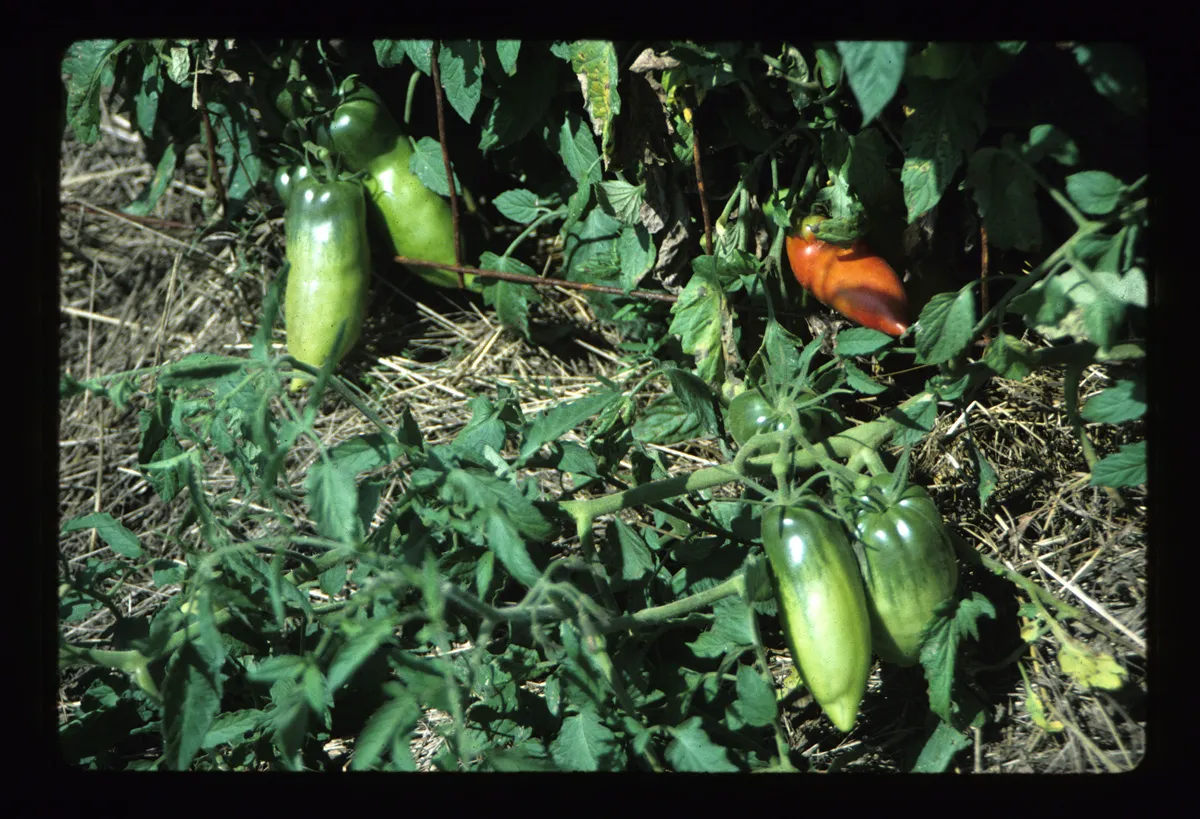 Explore this collection tractors trees cover crops buildings history organic farming energy activism advertising sense of place green manure season extension harvest garlic spinach mulch flowers tomatoes gatherings farming lettuce folklife architecture building fences group photograph poetry porches biographical Overview Creator: Jones, Doug Subject: Organic farmingSustainable agricultureBirdsfoot FarmTomatoesVegetable gardeningOrganic gardeningGardens Source:Original version: 35 mm color slide. Date Original:1994 Rights Rights Management:Original materials may be protected by the Copyright Law of the United States (more information). Resource Identifier:Private Collection Contributor:Birdsfoot Farm Relation:Back to the Land Technical Digitization Specifications:Scanned with Nikon Super CoolScan 9000 ED scanner as uncompressed TIFF images. Images resized to 1200 pixels wide, 150 dpi, and saved as JPEG (level 7) in Photoshop CS4 with Unsharp Mask of 60:1. Date Digital:Wed, 01/13/2010 - 20:00 Format:image/jpeg Type:Image