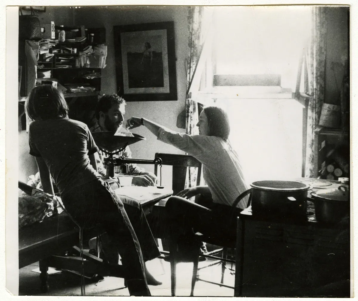 Explore this collection organic farming fences trees mulch lettuce group photograph harvest gatherings advertising sense of place flowers cover crops tractors buildings folklife spinach green manure porches building farming energy architecture season extension biographical activism tomatoes poetry garlic history Overview Creator: Jones, Doug Subject: Birdsfoot FarmFarm produceKitchensRooms & spacesPlants, EdibleSproutsAlfalfa Description:Valerie Summer weighing alfalfa sprouts at Birdsfoot Farm. Source:Original version: photograph, b&w; 5 x 6 in. Date Original:1981 Rights Rights Management:Original materials may be protected by the Copyright Law of the United States (more information). Resource Identifier:Private Collection Contributor:Birdsfoot Farm Relation:Back to the Land Technical Digitization Specifications:Scanned at 600ppi on Epson 1000XL scanner as 48-bit RGB uncompressed TIFF images. Images resized to 960 pixels wide, 150 dpi, and saved as JPEG (level 7) in Photoshop CS4 with Unsharp Mask of 60:1. Date Digital:Mon, 01/25/2010 - 20:00 Format:image/jpeg Type:Image