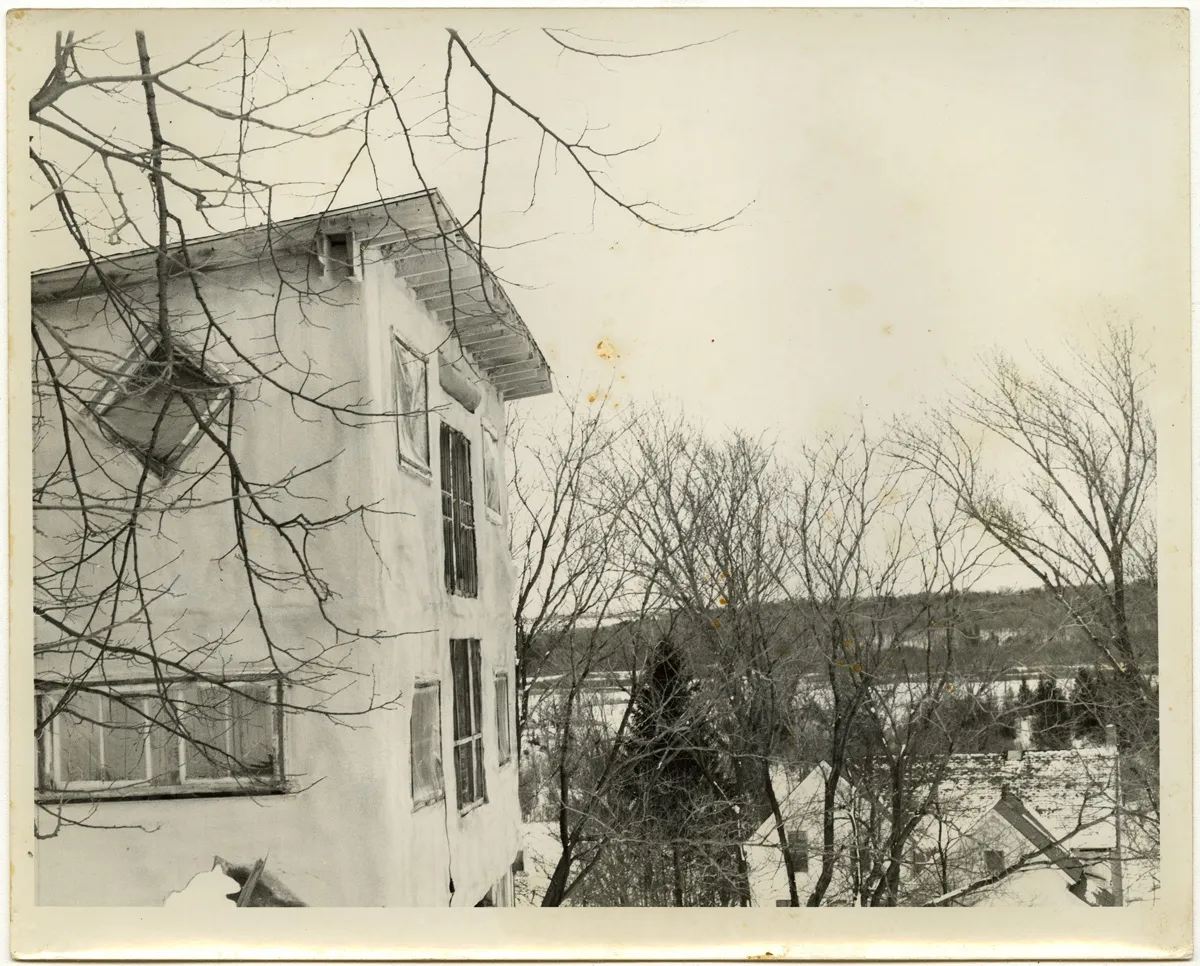 Explore this collection poetry green manure garlic gatherings history sense of place cover crops architecture tractors flowers building mulch activism trees fences energy season extension folklife tomatoes spinach organic farming farming biographical group photograph harvest advertising porches buildings lettuce Overview Creator: Jones, Doug Subject: Birdsfoot FarmHouses DwellingsOwner built houses Source:Original version: photograph, b&w; 8 x 10 in. Rights Rights Management:Original materials may be protected by the Copyright Law of the United States (more information). Resource Identifier:Private Collection Contributor:Birdsfoot Farm Relation:Back to the Land Technical Digitization Specifications:Scanned at 600ppi on Epson 1000XL scanner as 48-bit RGB uncompressed TIFF images. Images resized to 960 pixels wide, 150 dpi, and saved as JPEG (level 7) in Photoshop CS4 with Unsharp Mask of 60:1. Date Digital:Mon, 01/25/2010 - 20:00 Format:image/jpeg Type:Image