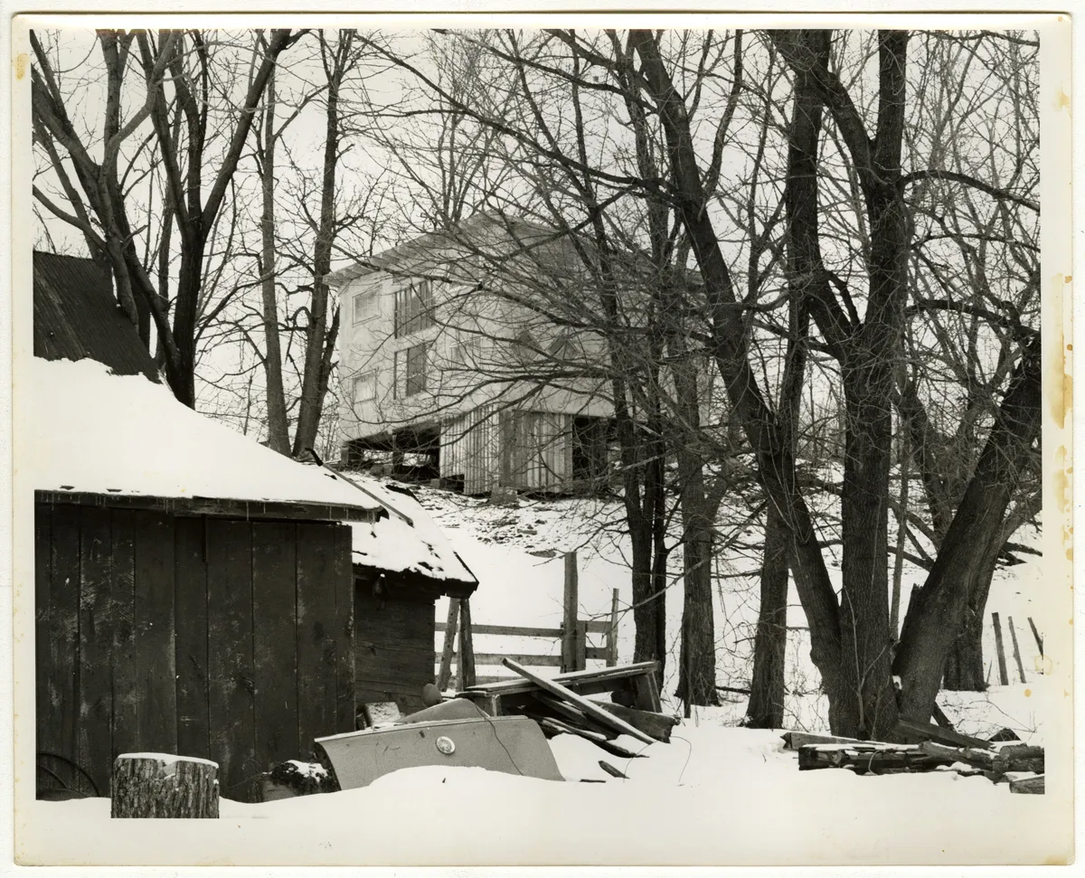 Explore this collection architecture lettuce sense of place tomatoes mulch flowers buildings harvest organic farming farming garlic biographical energy season extension spinach group photograph tractors activism building porches cover crops fences green manure trees history advertising gatherings poetry folklife Overview Creator: Jones, Doug Subject: Birdsfoot FarmHouses DwellingsOwner built housesOutbuildings Source:Original version: photograph, b&w; 8 x 10 in. Rights Rights Management:Original materials may be protected by the Copyright Law of the United States (more information). Resource Identifier:Private Collection Contributor:Birdsfoot Farm Relation:Back to the Land Technical Digitization Specifications:Scanned at 600ppi on Epson 1000XL scanner as 48-bit RGB uncompressed TIFF images. Images resized to 960 pixels wide, 150 dpi, and saved as JPEG (level 7) in Photoshop CS4 with Unsharp Mask of 60:1. Date Digital:Mon, 01/25/2010 - 20:00 Format:image/jpeg Type:Image