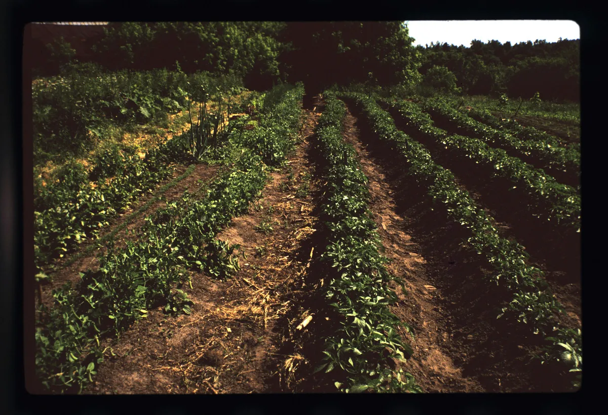 Explore this collection biographical organic farming farming cover crops architecture activism garlic tractors season extension flowers spinach gatherings folklife advertising trees group photograph sense of place building energy green manure fences mulch porches history poetry harvest tomatoes lettuce buildings Overview Creator: Jones, Doug Subject: Organic farmingSustainable agricultureBirdsfoot FarmPotatoesVegetablesGardensVegetable gardeningOrganic gardening Source:Original version: 35 mm color slide. Rights Rights Management:Original materials may be protected by the Copyright Law of the United States (more information). Resource Identifier:Private Collection Contributor:Birdsfoot Farm Relation:Back to the Land Technical Digitization Specifications:Scanned with Nikon Super CoolScan 9000 ED scanner as uncompressed TIFF images. Images resized to 1200 pixels wide, 150 dpi, and saved as JPEG (level 7) in Photoshop CS4 with Unsharp Mask of 60:1. Date Digital:Wed, 01/13/2010 - 20:00 Format:image/jpeg Type:Image