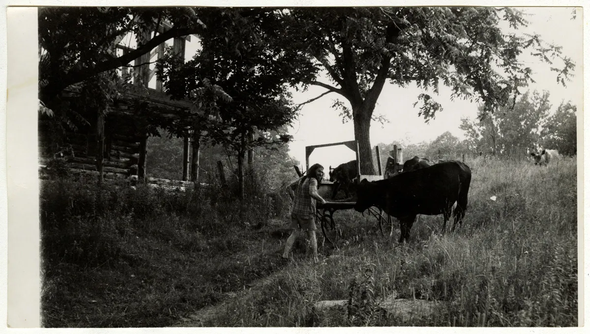 Explore this collection architecture organic farming folklife flowers biographical sense of place garlic green manure buildings advertising building activism tractors porches lettuce poetry tomatoes season extension spinach fences group photograph farming harvest cover crops history trees mulch energy gatherings Overview Creator: Jones, Doug Subject: Organic farmingSustainable agricultureBirdsfoot FarmDwellingsHousesLog housesFarm life Source:Original version: photograph, b&w; 4 1/2 x 8 in. Rights Rights Management:Original materials may be protected by the Copyright Law of the United States (more information). Resource Identifier:Private Collection Contributor:Birdsfoot Farm Relation:Back to the Land Technical Digitization Specifications:Scanned at 600ppi on Epson 1000XL scanner as 48-bit RGB uncompressed TIFF images. Images resized to 960 pixels wide, 150 dpi, and saved as JPEG (level 7) in Photoshop CS4 with Unsharp Mask of 60:1. Date Digital:Mon, 01/25/2010 - 20:00 Format:image/jpeg Type:Image