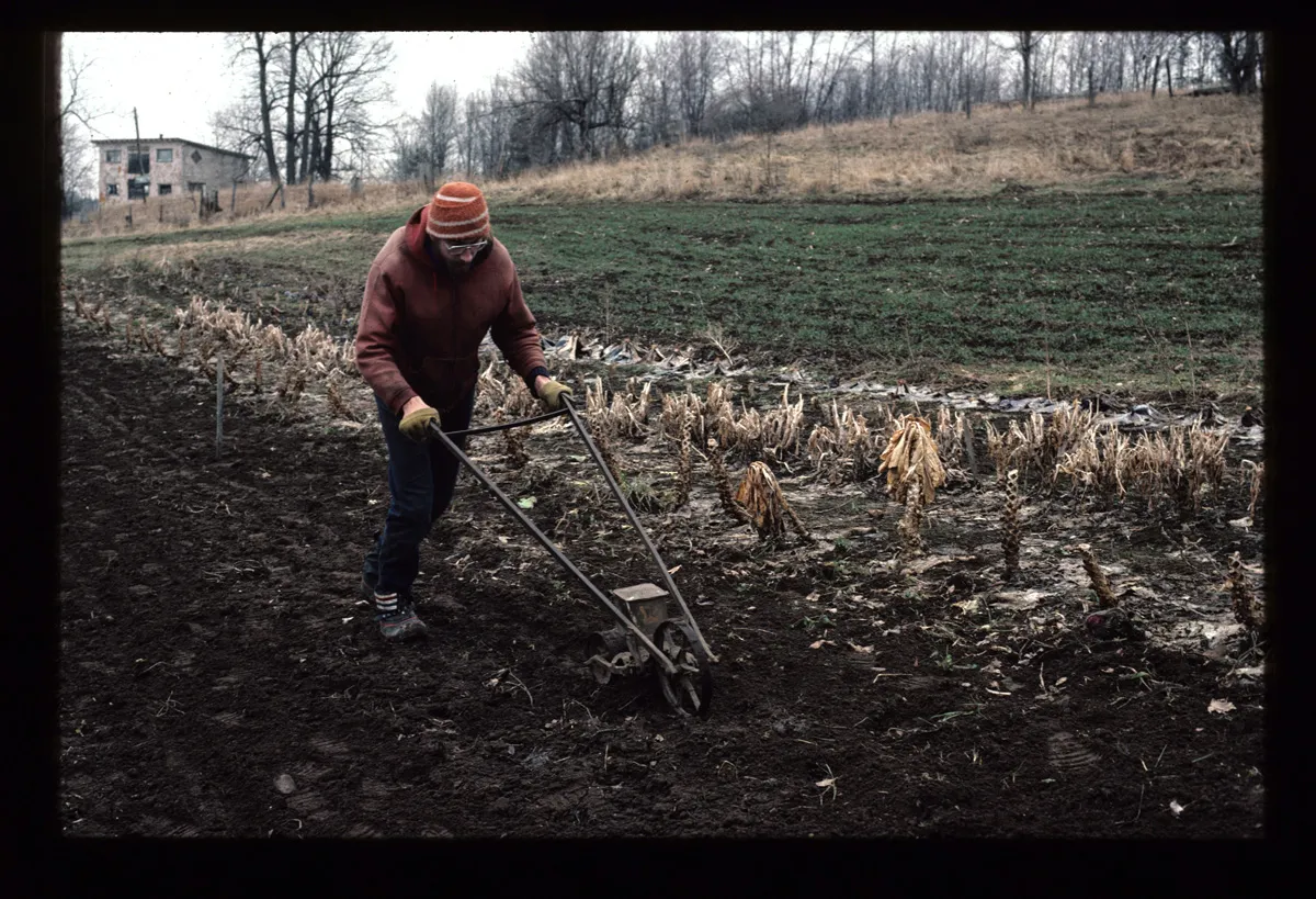 Explore this collection organic farming mulch sense of place harvest fences energy porches tomatoes spinach biographical trees flowers farming architecture tractors advertising history lettuce season extension activism poetry cover crops buildings garlic gatherings green manure folklife building group photograph Overview Creator: Jones, Doug Subject: Organic farmingSustainable agricultureBirdsfoot FarmOrganic gardeningVegetable gardeningHand tools Source:Original version: 35 mm color slide. Date Original:1990 Rights Rights Management:Original materials may be protected by the Copyright Law of the United States (more information). Resource Identifier:Private Collection Contributor:Birdsfoot Farm Relation:Back to the Land Technical Digitization Specifications:Scanned with Nikon Super CoolScan 9000 ED scanner as uncompressed TIFF images. Images resized to 1200 pixels wide, 150 dpi, and saved as JPEG (level 7) in Photoshop CS4 with Unsharp Mask of 60:1. Date Digital:Tue, 01/12/2010 - 20:00 Format:image/jpeg Type:Image