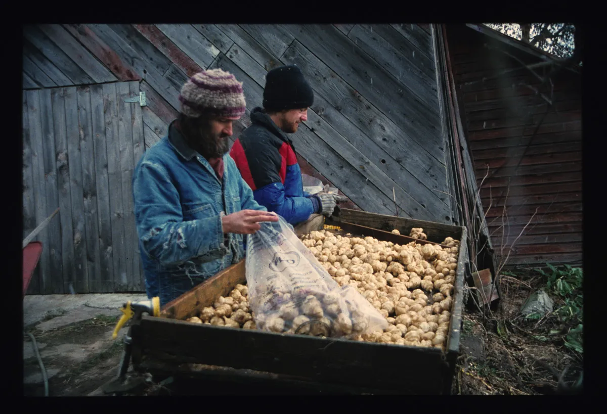Explore this collection flowers group photograph building architecture gatherings spinach history lettuce poetry cover crops trees season extension green manure mulch activism organic farming biographical energy garlic folklife porches harvest sense of place farming tractors advertising tomatoes buildings fences Overview Creator: Jones, Doug Subject: Jerusalem artichokesSunflowersVegetablesFood processingHarvestingOrganic farmingSustainable agricultureBirdsfoot FarmVegetable gardeningOrganic gardeningWashingCleaning Source:Original version: 35 mm color slide. Rights Rights Management:Original materials may be protected by the Copyright Law of the United States (more information). Resource Identifier:Private Collection Contributor:Birdsfoot Farm Relation:Back to the Land Technical Digitization Specifications:Scanned with Nikon Super CoolScan 9000 ED scanner as uncompressed TIFF images. Images resized to 1200 pixels wide, 150 dpi, and saved as JPEG (level 7) in Photoshop CS4 with Unsharp Mask of 60:1. Date Digital:Wed, 01/20/2010 - 20:00 Format:image/jpeg Type:Image