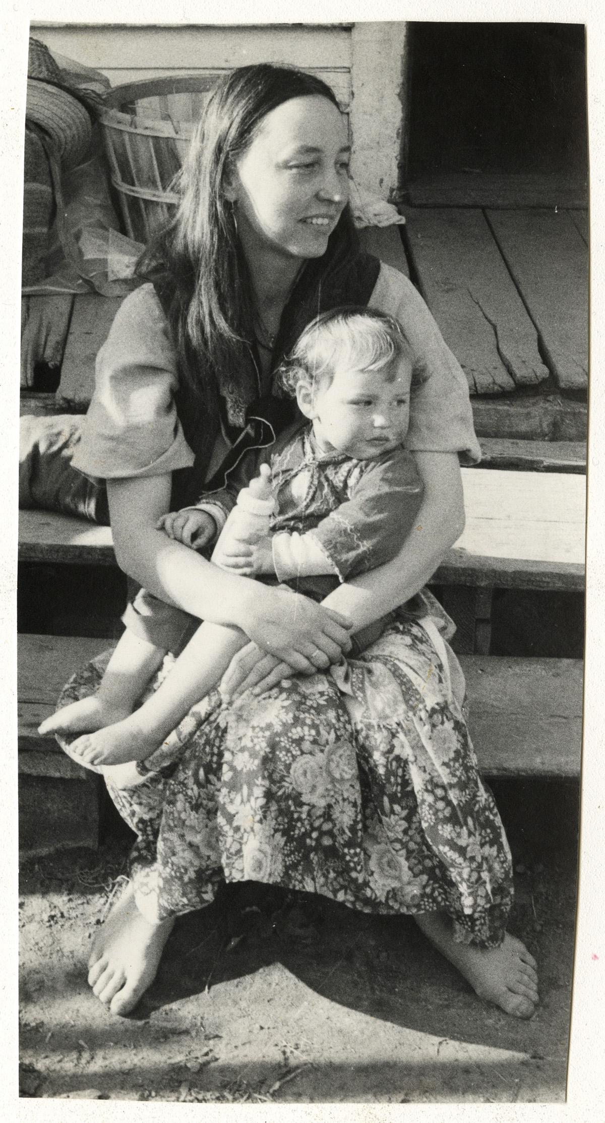 Explore this collection harvest building sense of place porches advertising trees cover crops tractors spinach fences season extension green manure activism history lettuce organic farming garlic farming flowers gatherings mulch poetry biographical group photograph energy buildings architecture tomatoes folklife Overview Creator: Jones, Doug Subject: Birdsfoot FarmPorchesChildrenChild rearing Description:Valerie Summer with daughter Prairie Rose Summer on the Birdsfoot porch. Source:Original version: photograph, b&w; 3 5/8x7 in. Rights Rights Management:Original materials may be protected by the Copyright Law of the United States (more information). Resource Identifier:Private Collection Contributor:Katz, David Relation:Back to the Land Technical Digitization Specifications:Scanned at 600ppi on Epson 1000XL scanner as 48-bit RGB uncompressed TIFF images. Images resized to 960 pixels wide, 150 dpi, and saved as JPEG (level 7) in Photoshop CS4 with Unsharp Mask of 60:1. Date Digital:Thu, 11/19/2009 - 20:00 Format:image/jpeg Type:Image