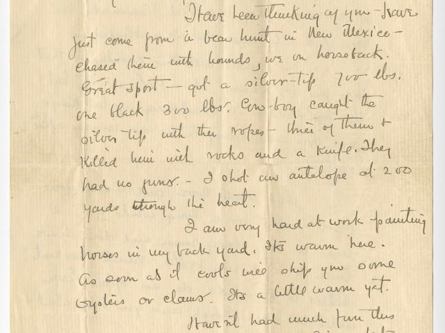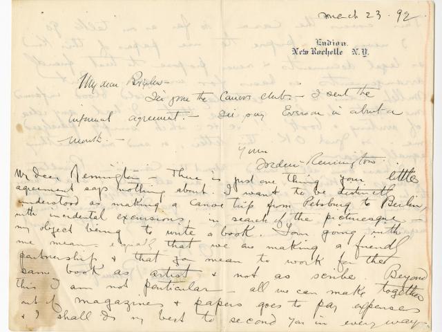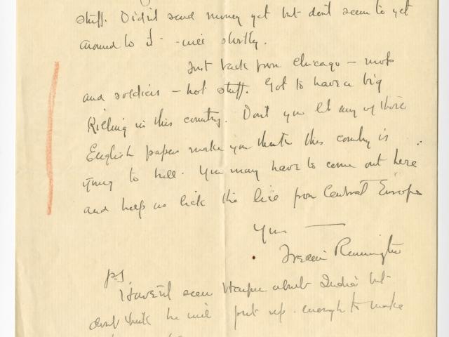Frederic Remington sometimes illustrated his letters to family or close friends with sketches. The letters shown in the gallery below typify Remington’s often lighthearted approach to letter writing.