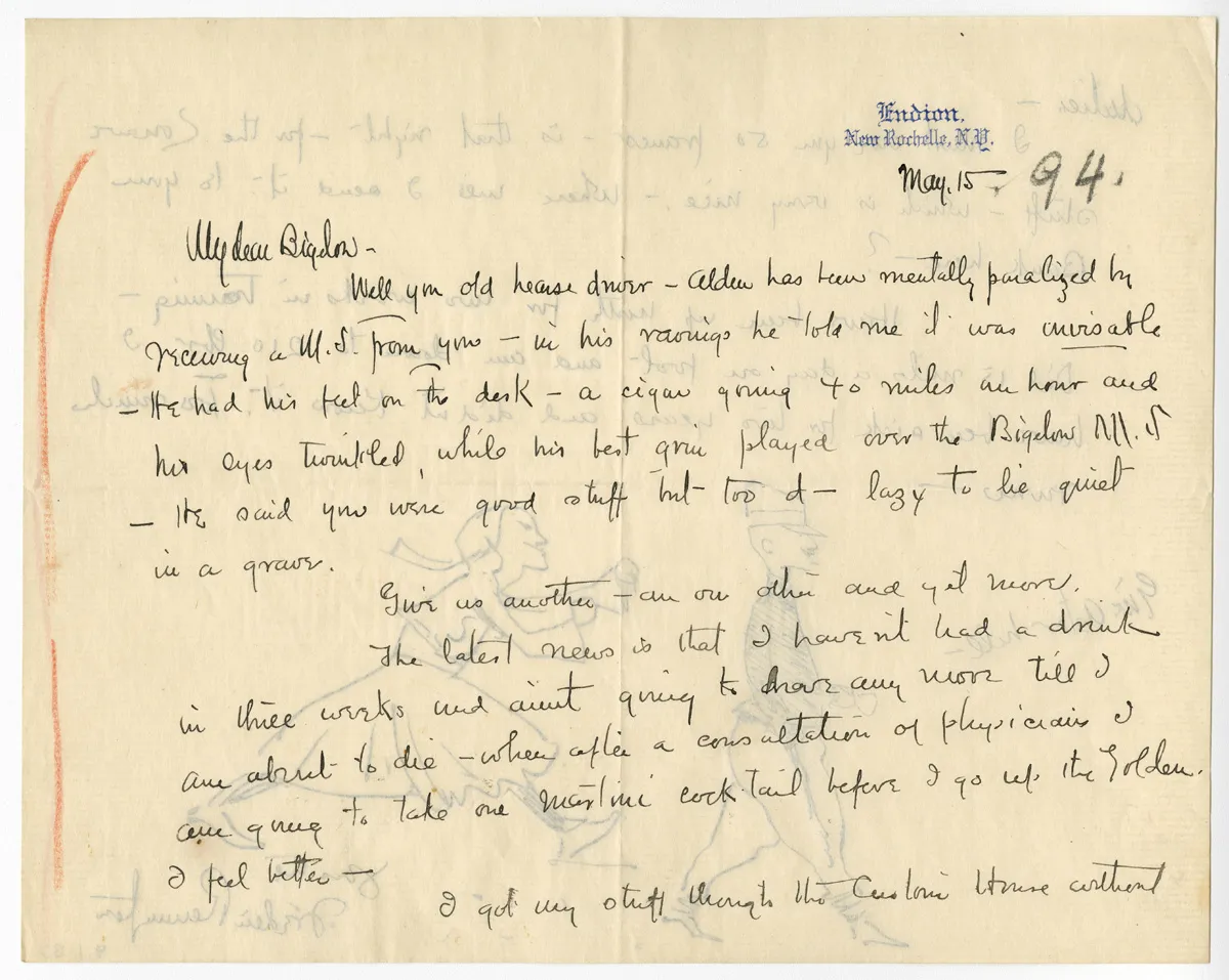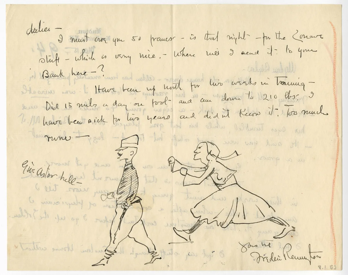 Overview Creator: Remington, Frederic, 1861-1909 Subject: Remington, Frederic, 1861-1909 -- CorrespondenceArtists – United States -- CorrespondenceArt and society -- United States -- History -- 19th centuryRemington, Frederic, 1861-1909Bigelow, Poultney, b. 1855 Source:Original letter: ink on paper, 2 p. Language:eng Rights Rights Management:Original materials may be protected by the Copyright Law of the United States (more information). Resource Identifier:Private Collection Technical Digitization Specifications:Scanned at 600ppi on Epson 1000XL scanner as 48-bit RGB uncompressed TIFF images. Images resized to 960 pixels wide, 150 dpi, and saved as JPEG (level 7) in Photoshop CS5 with Unsharp Mask of 60:1. Date Digital:Wed, 08/17/2011 - 21:00 Format:image/jpeg Type:Text Location Series:1 Box:1 Folder:B52
