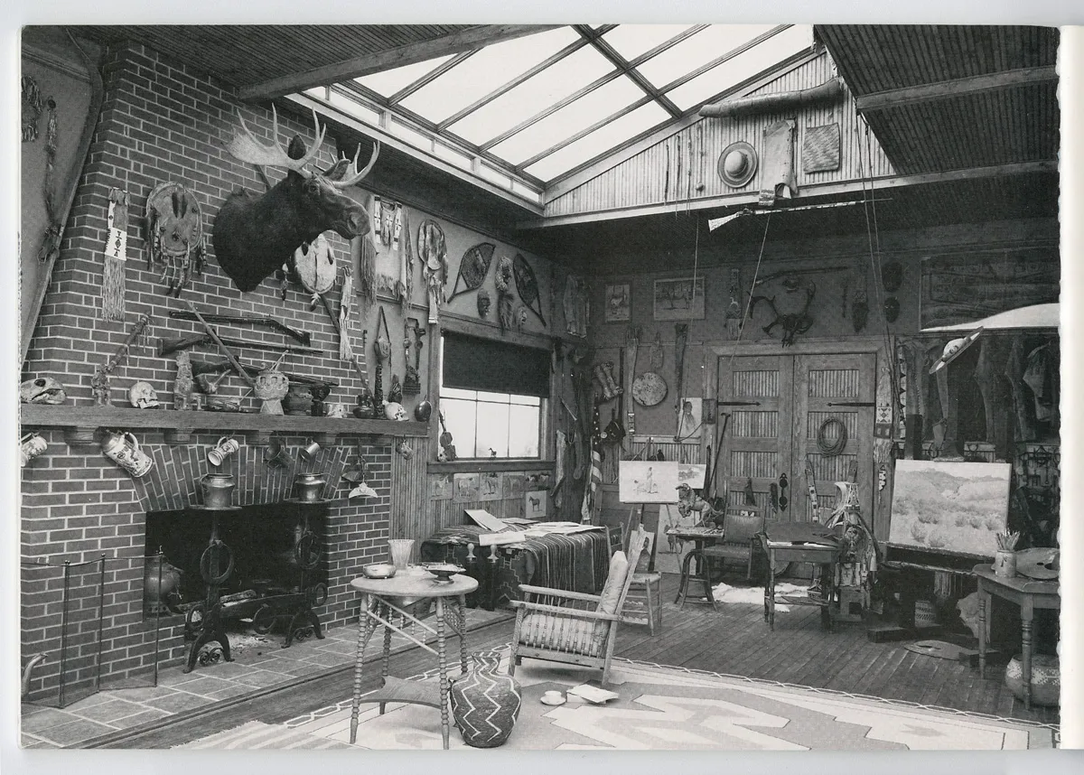 A recreation of Frederic Remington's New Rochelle studio at the Buffalo Bill Historical Center in Cody, Wyoming, based on a painting by Lyelle Carr in 1900.