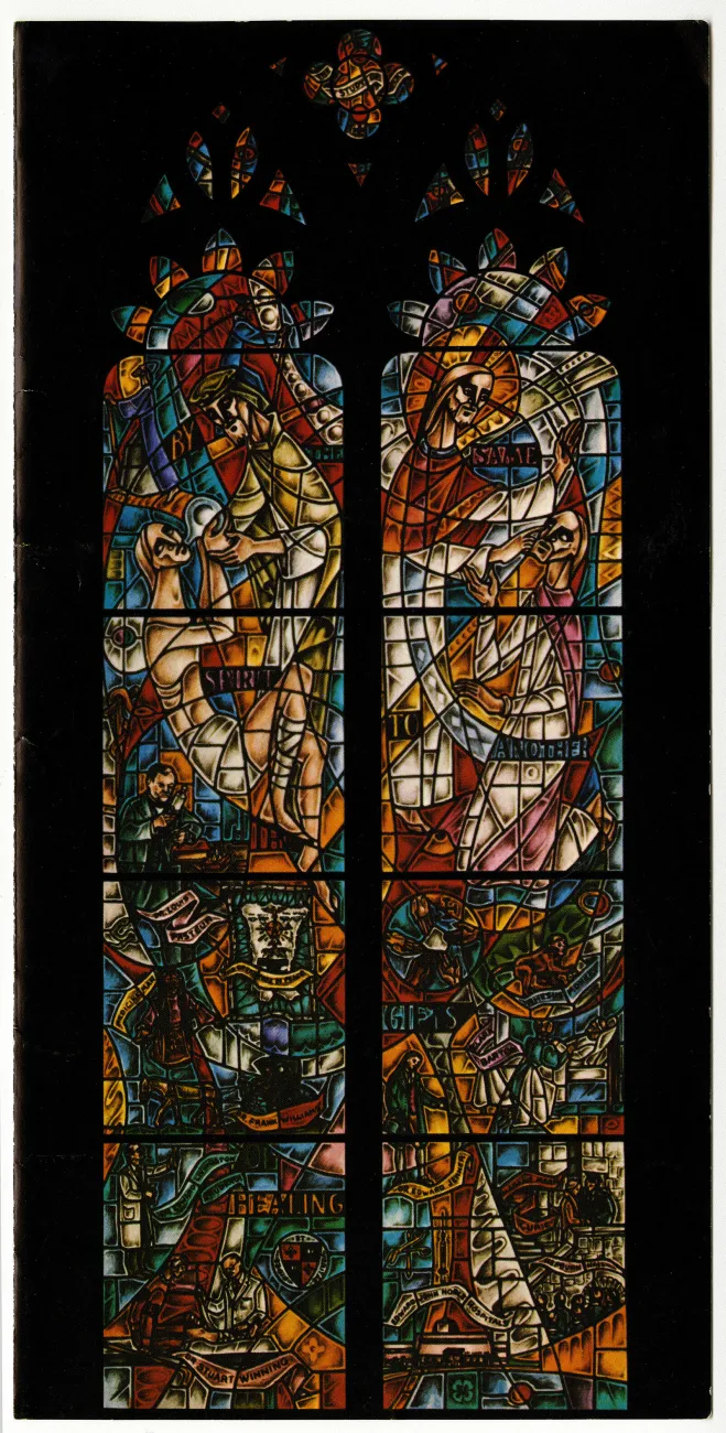 Overview Creator: Henry Lee Willet Subject: Church Buildings -- New York (State) -- CantonSt. Lawrence University -- HistoryGunnison Memorial Chapel (Canton, N.Y.)Glass painting and staining -- New York (State) Description:Dedicated May 23, 1975, the Study of Man was a gift of Dr. Stuart A. Winning ('22) and long time health center director. Coverage:Canton, New York Date Original:1975 Decade:Wed, 12/31/1969 - 20:00 Language:eng Rights Rights Management:Original materials may be protected by the Copyright Law of the United States (more information). Resource Identifier:ODY Archives, RG 12, Gunnison Windows, Box 19A Publisher:St. Lawrence University Technical Digitization Specifications:Scanned at 600ppi on Epson 10000XL scanner as 48-bit RGB uncompressed TIFF images. Images resized to 2000 pixels wide, 72 dpi, and saved as JPEG (level 10) in Photoshop CS6 with Unsharp Mask of 60:1 Date Digital:Tue, 12/10/2013 - 20:00 Format:image/jpeg Type:Image Location Series:1 Box:19 Folder:Dedication programs