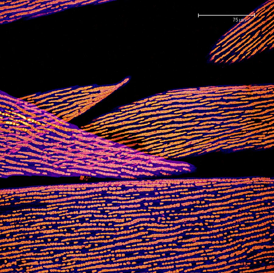 Overview Creator: Weis, Connor Subject: Description:Transparent projection Of a series scan of Common moss (Digitaria). Chloroplasts shown in glow, sugars shown in red, cell wall displayed in blue. 25.89 µm section Date Original:2013, April 22 Language:eng Rights Rights Management:Original materials may be protected by the Copyright Law of the United States (more information). Technical Digitization Specifications:Saved as JPEG (level 12) in Photoshop CS6 Date Digital:Sun, 02/08/2015 - 20:00 Format:image/jpeg Type:Image