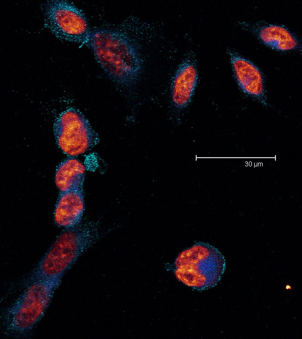 Overview Creator: Reynolds, Sarah Subject: Description:Average Projection. Depth of section: 5.70μm. F-actin filaments are a blue. Alpha tubulins are in cyan. Nuclei are in Glow. Date Original:2011, November 2 Language:eng Rights Rights Management:Original materials may be protected by the Copyright Law of the United States (more information). Technical Digitization Specifications:Saved as JPEG (level 12) in Photoshop CS5 with Unsharp Mask of 60:1. Date Digital:Sun, 01/29/2012 - 20:00 Format:image/jpeg Type:Image
