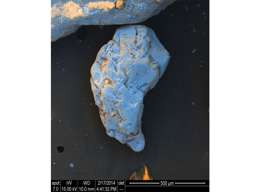 Overview Creator: Caramia, Sierra Subject: Description:Sand grain sample 1 from Marbella, Spain; 15.00 kV, spot size 7; back scattered electron Date Original:2014, February 17 Language:eng Rights Rights Management:Original materials may be protected by the Copyright Law of the United States (more information). Technical Digitization Specifications:Saved as JPEG (level 12) in Photoshop CS6 Date Digital:Tue, 01/20/2015 - 20:00 Format:image/jpeg Type:Image